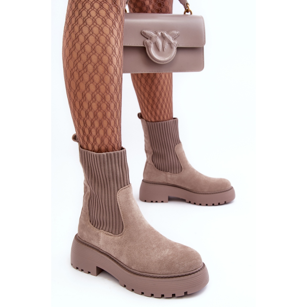 Détails: PS1 Bottines En Daim Avec Chaussette Sur Plateforme Et Talon Plat, Beige Foncé Rewam