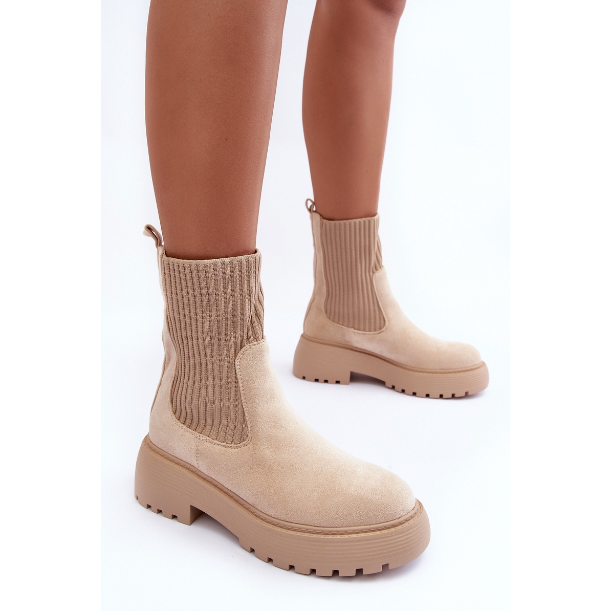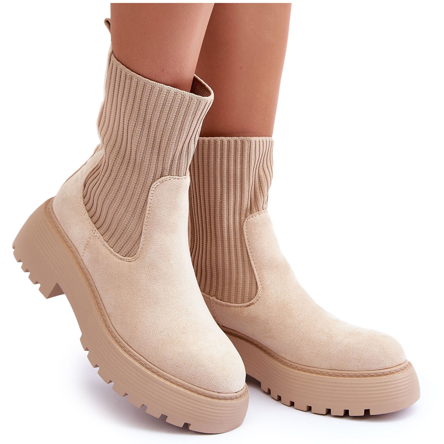 PS1 PS1 Bottines En Daim Avec Chaussette Sur Plateforme Et Talon Plat, Beige Rewam