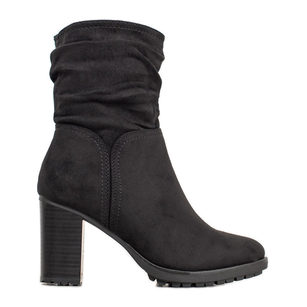 Nous présentons des bottines à fermeture éclair Super Me en daim élégantes et confortables dans une couleur noire à la mode, qui sont un choix parfait pour la saison automne/hiver. Fabriquées en cuir suédé écologique, ces chaussures pour femmes se distinguent par des tiges à volants qui arrivent au-dessus de la cheville, ajoutant élégance et féminité à n'importe quel style.