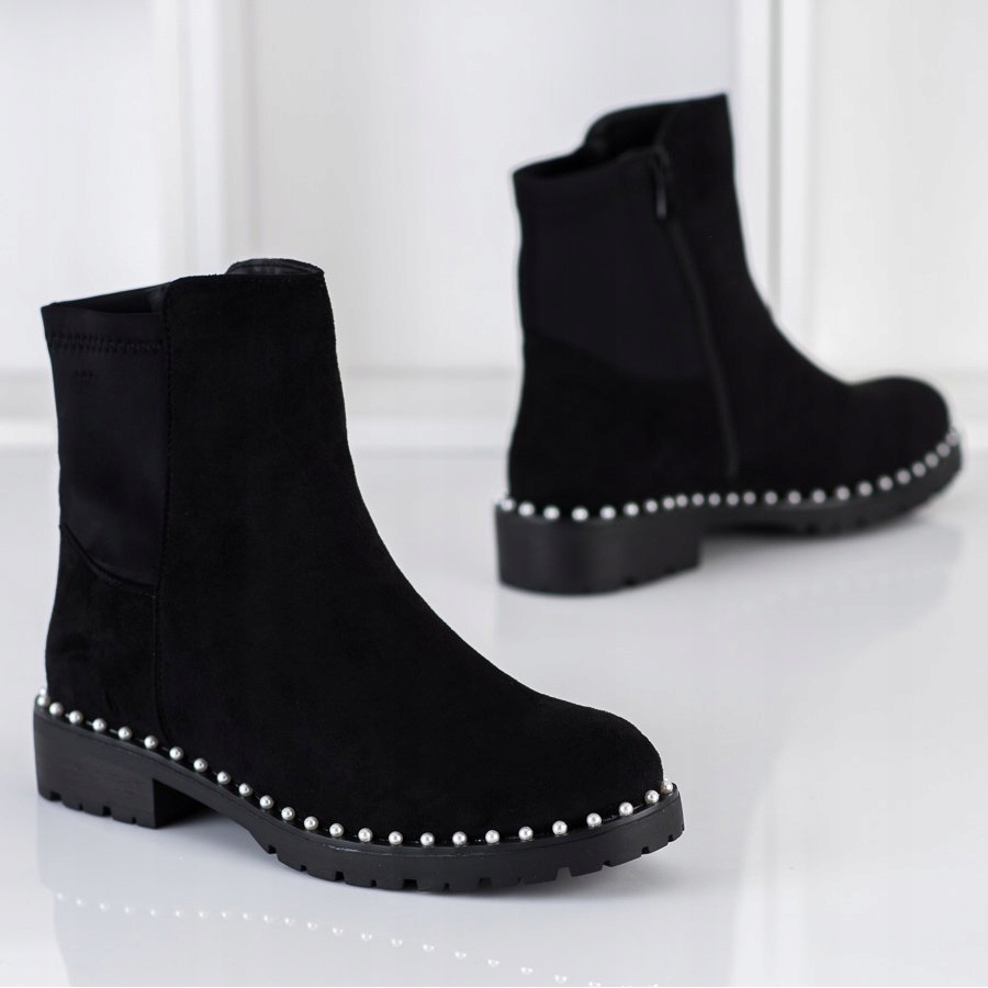 Les bottines en daim avec perles du fabricant Bestelle sont un incontournable de la garde-robe d'automne et d'hiver de toute femme élégante. Ces élégantes bottines de couleur noire classique sont confectionnées en cuir écologique de haute qualité imitant le daim, ce qui souligne leur caractère luxueux.