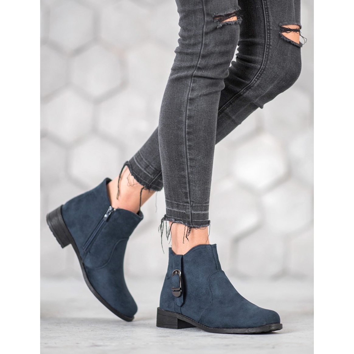 Découvrez l'élégance et le confort avec les bottines en daim bleu marine de Small Swan. Ces chaussures uniques, fabriquées en cuir écologique de haute qualité avec une finition en daim, allient style classique et moderne, ce qui en fait le choix parfait pour les journées les plus froides.