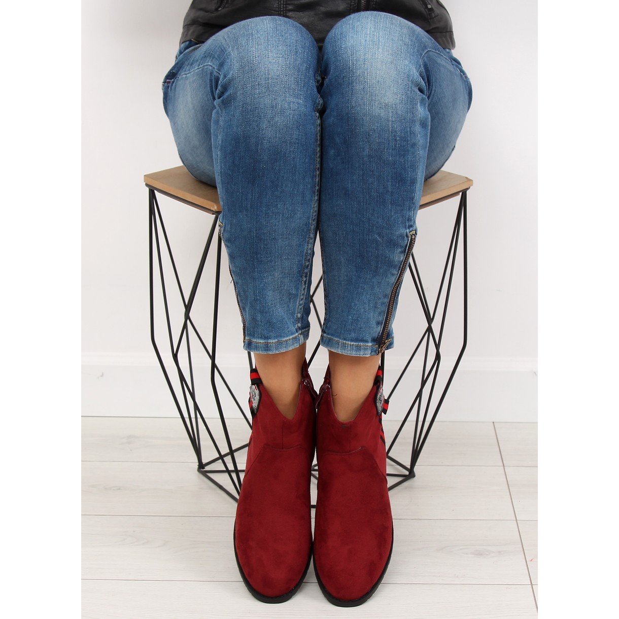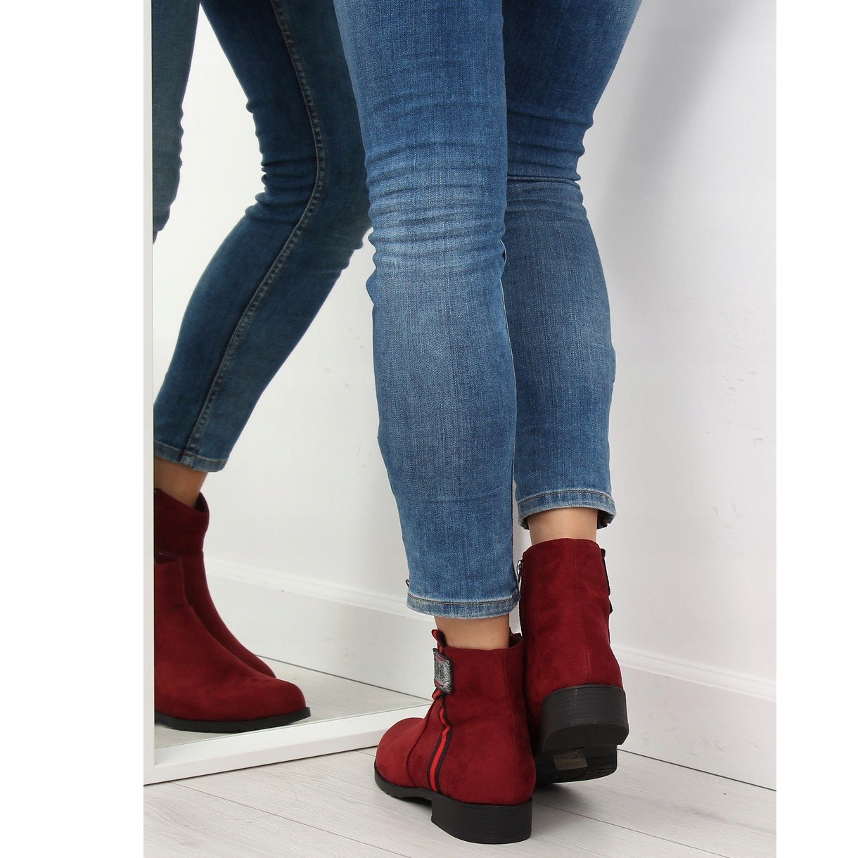 Détails: Bottines en daim bordeaux 100-913B0-2 Rouge