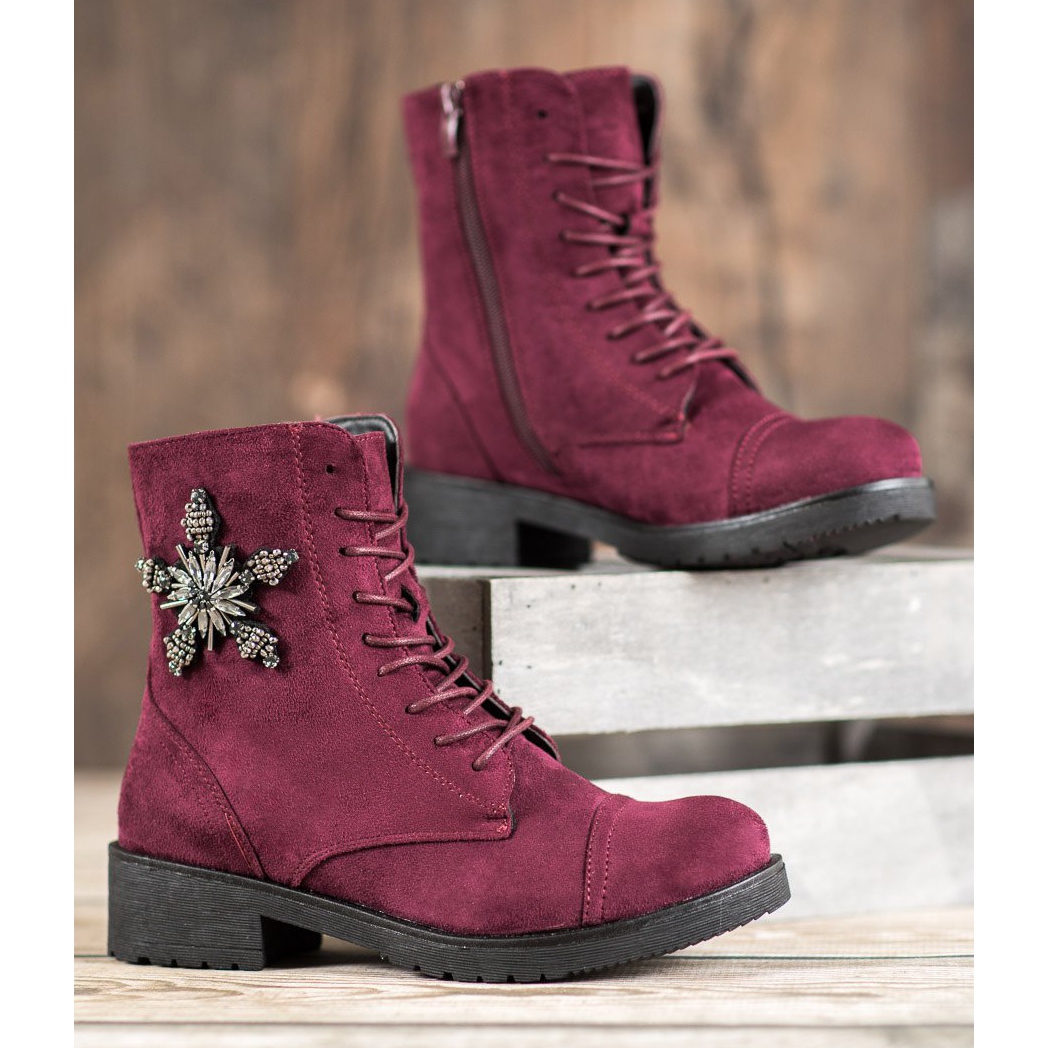 Détails: SHELOVET Bottines en daim bordeaux rouge