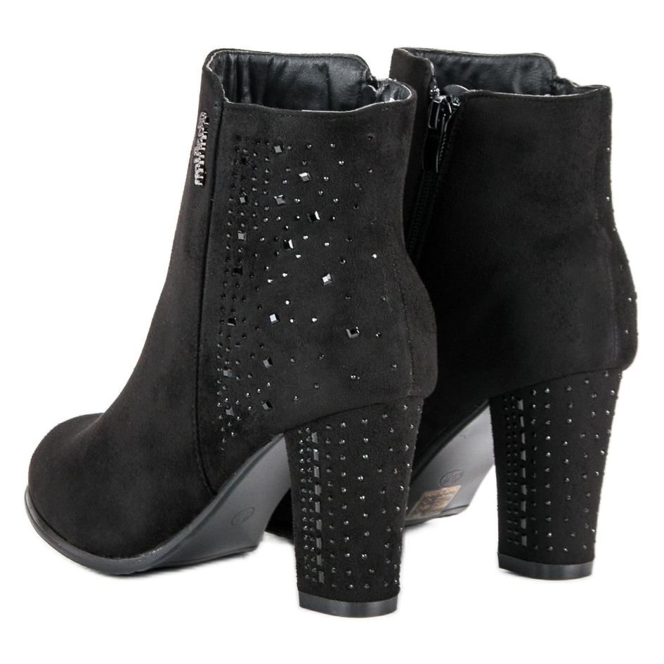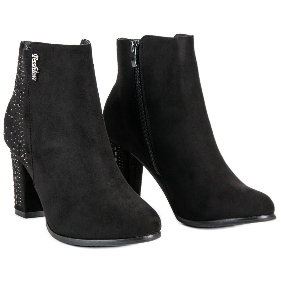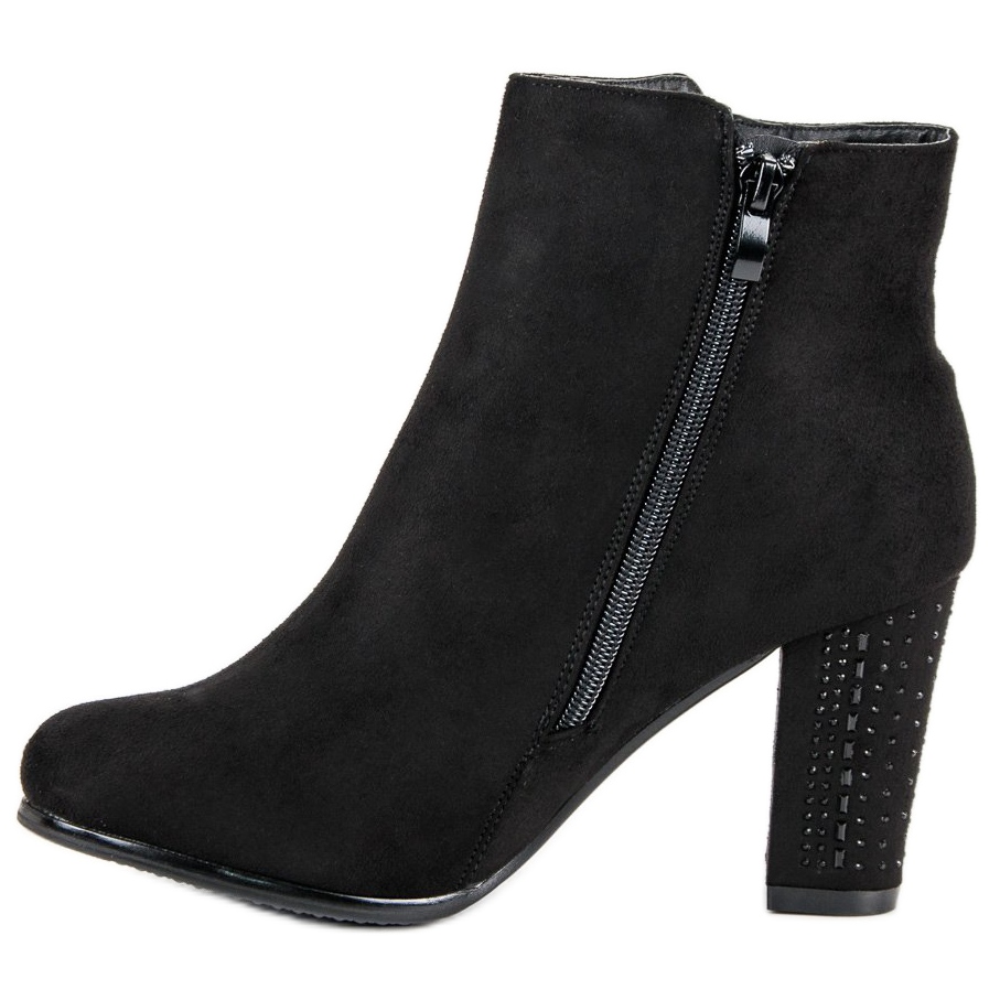 L'arrière des chaussures est orné de petits cristaux brillants, qui leur confèrent un caractère unique et sont parfaites pour les sorties en soirée. Un avantage supplémentaire est le talon renforcé, qui augmente le confort d'utilisation. Les bottes sont fermées par une fermeture éclair, ce qui les rend faciles à enfiler et à enlever, et le bout rond ajoute de la subtilité.