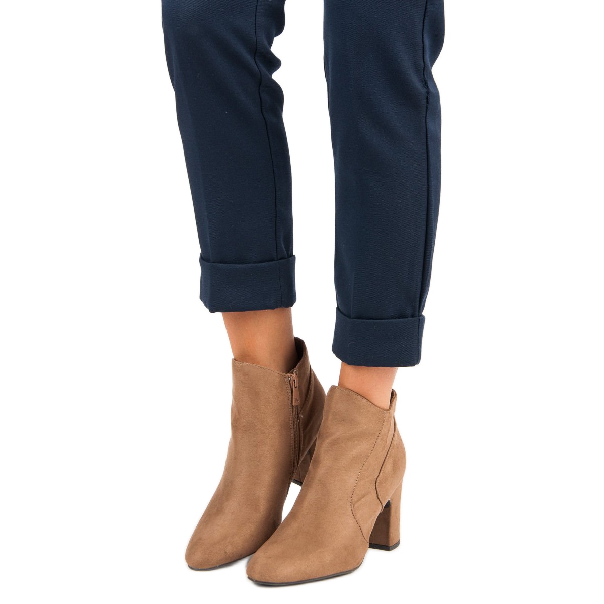 Les bottes arrivent au-dessus de la cheville, ce qui offre une protection supplémentaire contre le froid et l'humidité, parfaite pour les journées plus froides. La hauteur du talon est de 8 cm, ce qui allonge efficacement les jambes et assure en même temps la stabilité grâce à la forme de la colonne. À son tour, le talon renforcé garantit un confort de port tout au long de la journée.