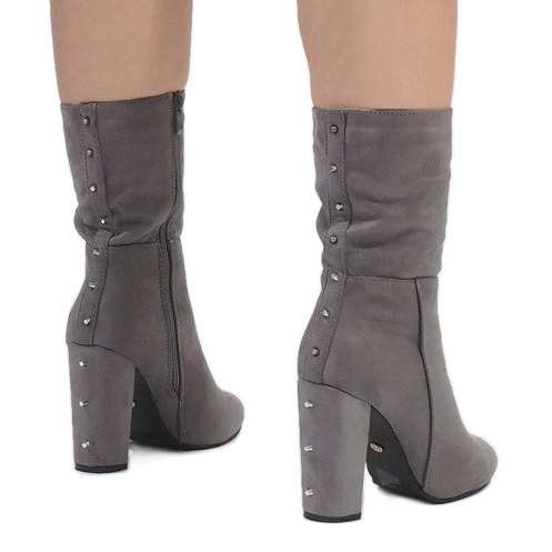 Découvrez l'élégance et la modernité avec les bottines en daim gris YA-2726. Ces chaussures élégantes, fabriquées en cuir suédé écologique de haute qualité, sont un choix parfait pour toute occasion. Leur aspect attrayant est souligné par un poteau décoratif orné de clous tendance, ajoutant du caractère à l'ensemble du style.