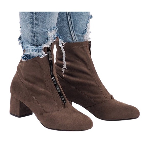 Détails: Bottines en daim kaki avec fermeture éclair FOZ-01 multicolore vert