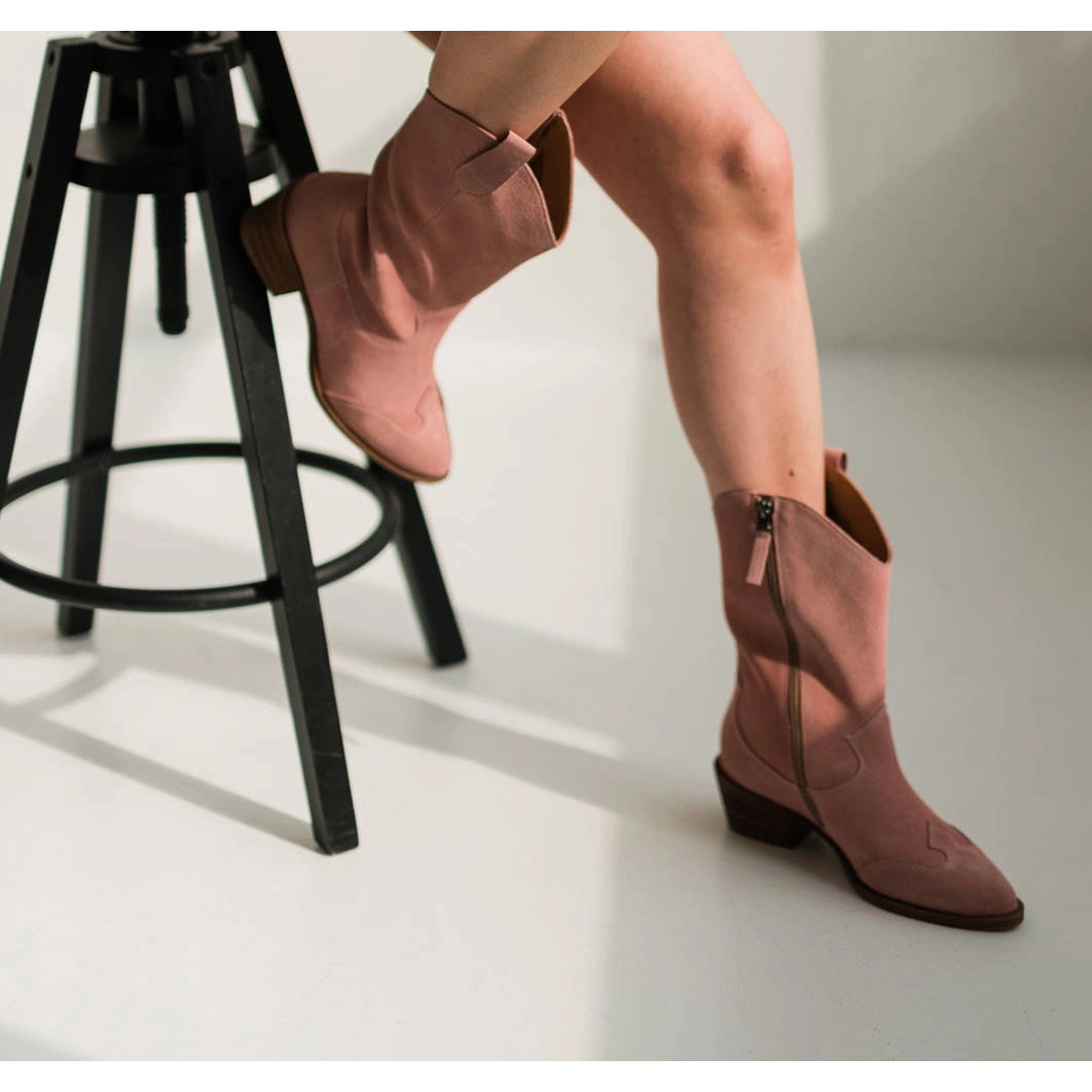 Marco Shoes Marco Shoes Bottines en daim naturel rose