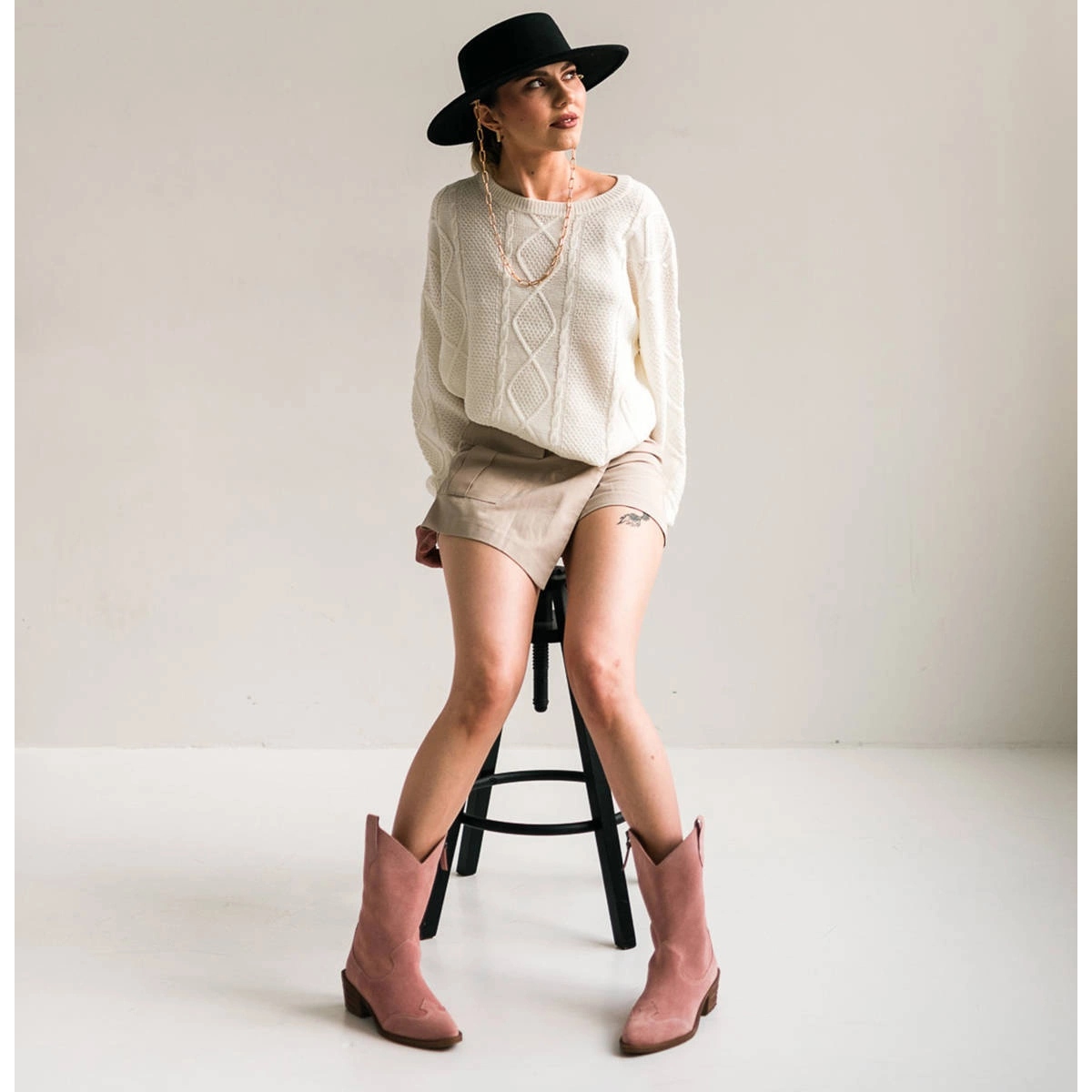 L'avantage de ces chaussures est la semelle intérieure en cuir, qui assure un confort d'utilisation. Le matériau extérieur est en cuir suédé naturel, ce qui leur donne un look élégant. Le modèle à la mode de bottes 1598B-824-1 BP en daim naturel n'a pas d'isolation, ce qui en fait un choix idéal pour les journées plus chaudes. La hauteur du talon est de 4,5 cm et son type est un talon plat. Une caractéristique supplémentaire est le matériau respirant qui offre respirabilité et confort.