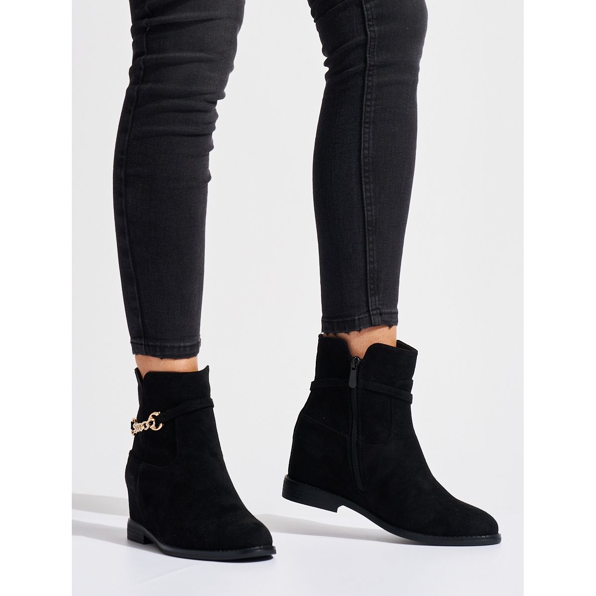 Bottines en daim noir avec chaîne