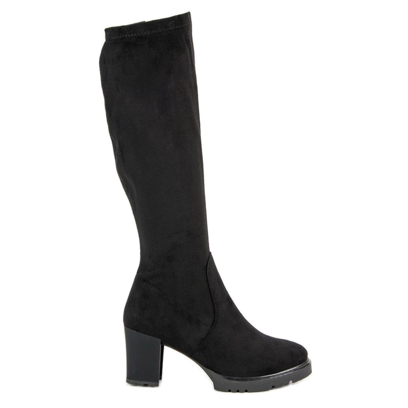 Les bottes en daim noires sont le choix parfait pour les femmes qui souhaitent allier élégance et confort. Fabriqués en daim écologique, ils sont extrêmement élégants et correspondent aux dernières tendances de la mode. Ces bottes classiques à hauteur de genou mettent parfaitement en valeur la silhouette féminine et le talon haut de 8,5 cm rend les jambes plus fines et plus gracieuses.