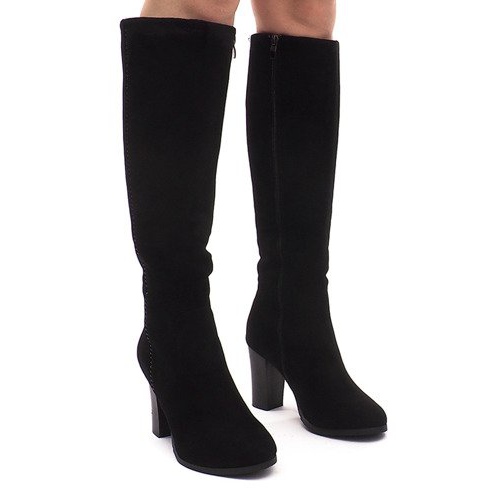 Découvrez l'élégance et le confort avec les bottes à talons hauts en daim KSL006 de couleur noire classique. Ces chaussures hautes pour femme dotées d'un talon bloc de 8 centimètres allient design tendance et praticité. La semelle antidérapante offre stabilité et chaleur, ce qui en fait le choix parfait pour les journées les plus froides.