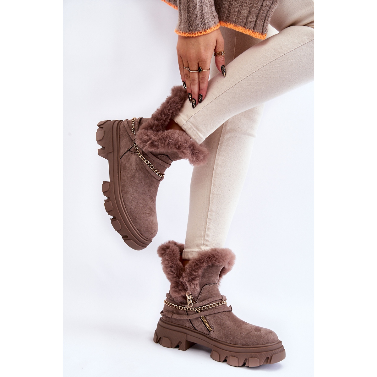 Découvrez l'élégance et le confort avec les bottes en daim PM1 uniques pour femmes avec une chaîne décorative en marron clair. Fabriquées en éco-daim de haute qualité, ces bottes à la mode attirent l'attention avec une sangle décorative originale et une chaîne qui peuvent être retirées à volonté, vous permettant de les adapter à différents styles.