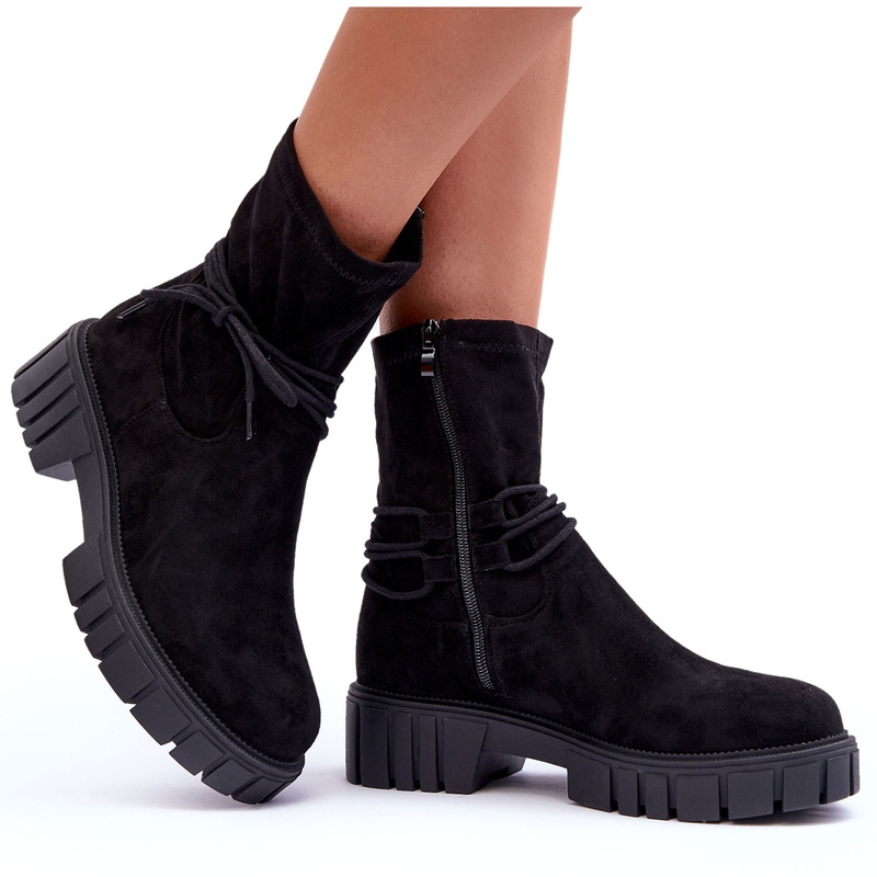 Les bottes pour femmes en daim avec reliure Black Lineanor sont des bottes pour femmes classiques noires de la marque Inna. Le produit est fabriqué en cuir suédé écologique, agréable au toucher. Les bottes ont une fermeture éclair latérale et une décoration supplémentaire sous forme de reliure sur la tige. Les chaussures sont dotées d'un contrefort de talon renforcé, ce qui assure un confort de marche.