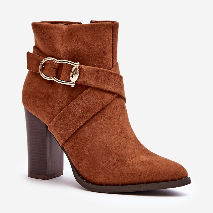 Détails: Bottines en daim sur talon haut avec boucle Camel Eftane brun