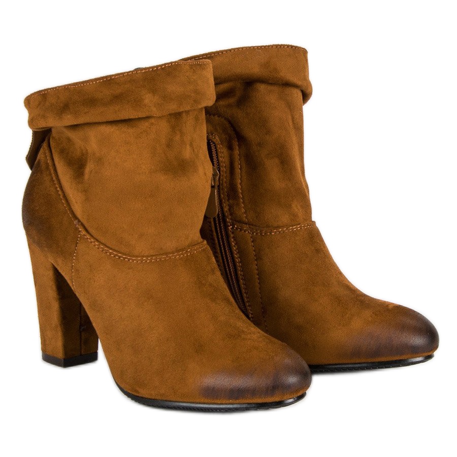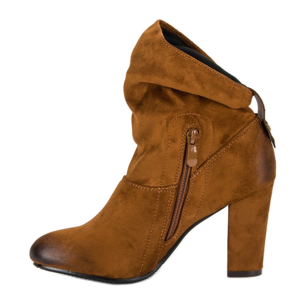 Des caractéristiques supplémentaires, telles qu'un talon renforcé et une semelle en plastique avec bande de roulement, augmentent le confort de port, tandis que la semelle intérieure en textile fait de chaque pas un plaisir. Les bottes à talons hauts en daim marron de Vinceza sont un incontournable dans la garde-robe de toute femme à la mode qui valorise l'élégance et le confort. Faites-vous plaisir et procurez-vous ce modèle unique !
