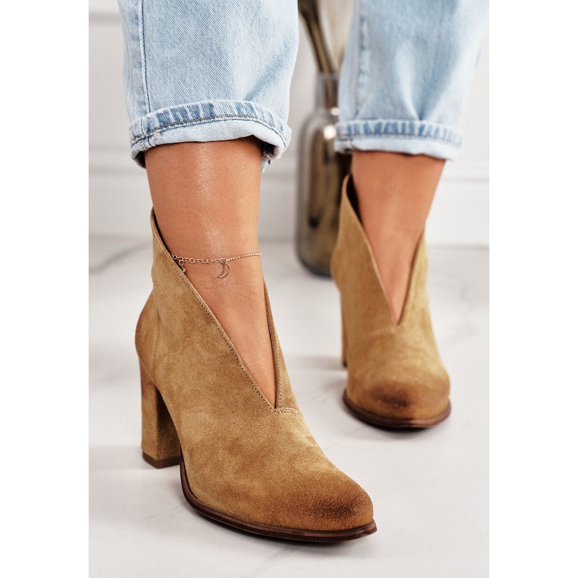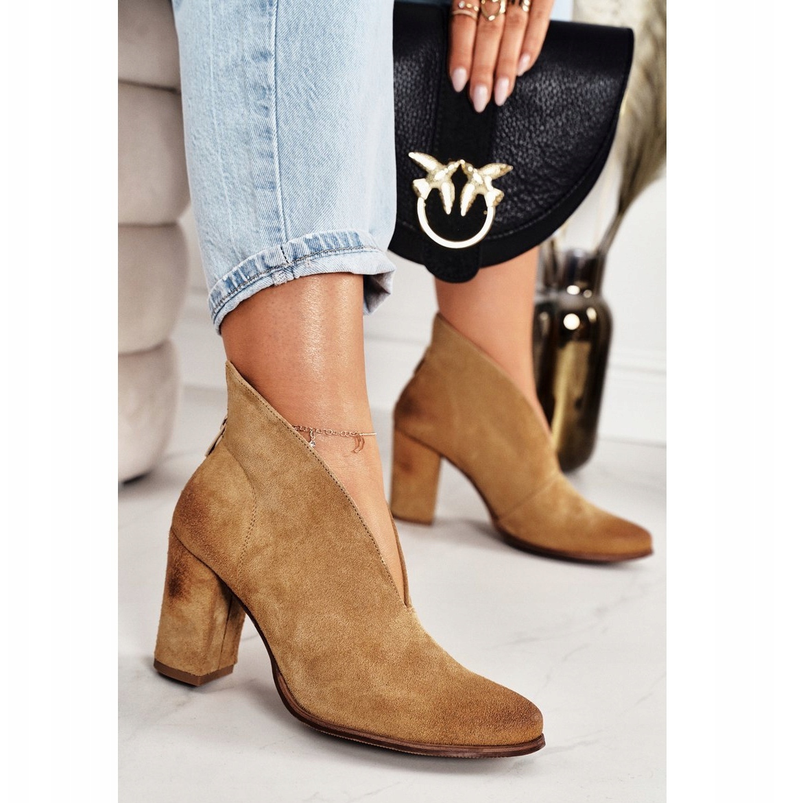Détails: Exquisite Bottines En Daim Sur Un Talon Avec Une Coupe Exquise 1231 Rouge beige brun