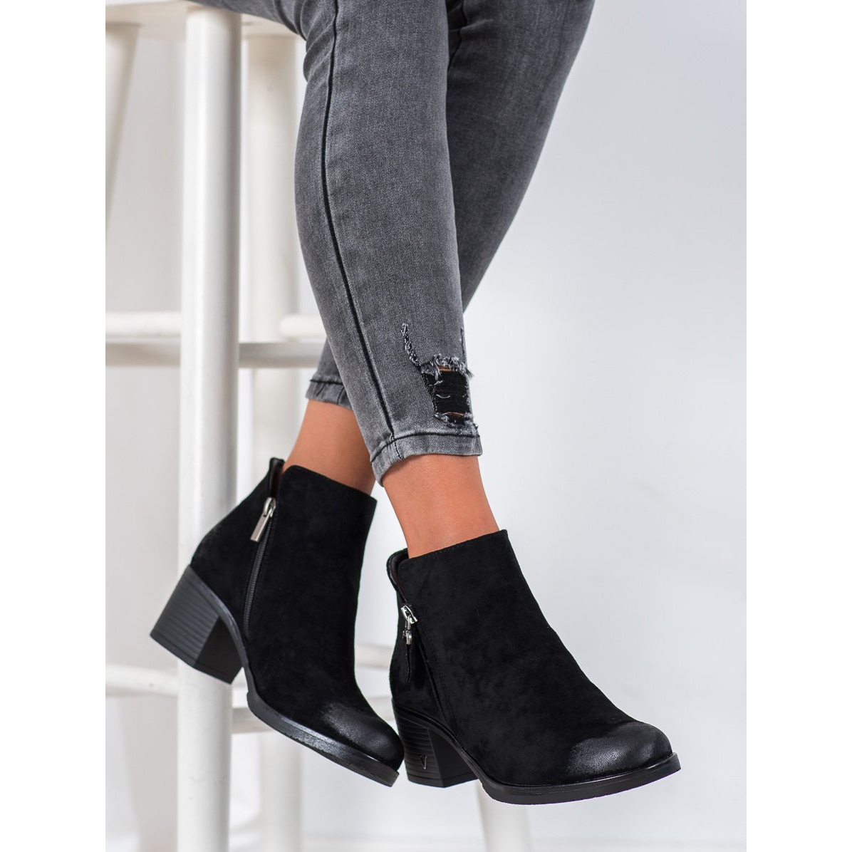 Fabriquées en cuir suédé écologique, les bottines VINCEZA sont extrêmement tendance. Le bout rond et le talon renforcé intégré assurent confort et stabilité, et la fermeture éclair sur le côté facilite l'enfilage. Un talon épais de 5,5 cm ajoute non seulement quelques centimètres, mais aussi un caractère moderne à n'importe quel style.