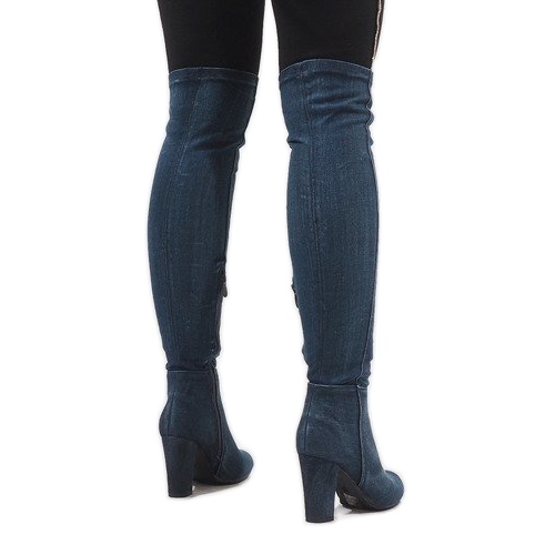 Découvrez les extraordinaires bottes en jean bleu avec abrasions BH70-HB, qui deviendront un élément indissociable de votre garde-robe. Ces chaussures hautes au-dessus du genou s'adaptent parfaitement à la jambe, soulignant la silhouette et lui donnant un look à la fois élégant et décontracté. Confectionnés en denim avec de jolies déchirures aux genoux, ils sont le choix parfait pour toutes les occasions.