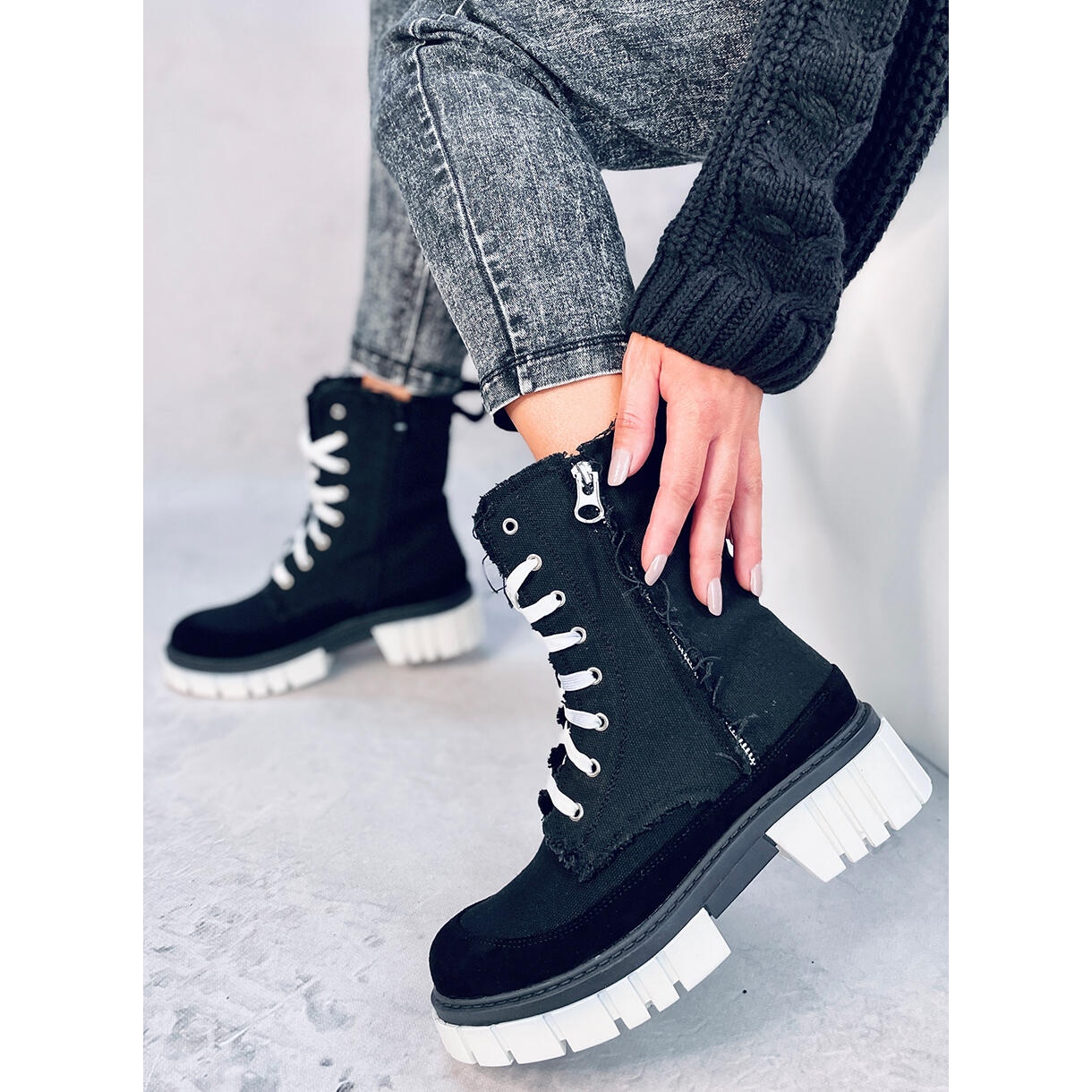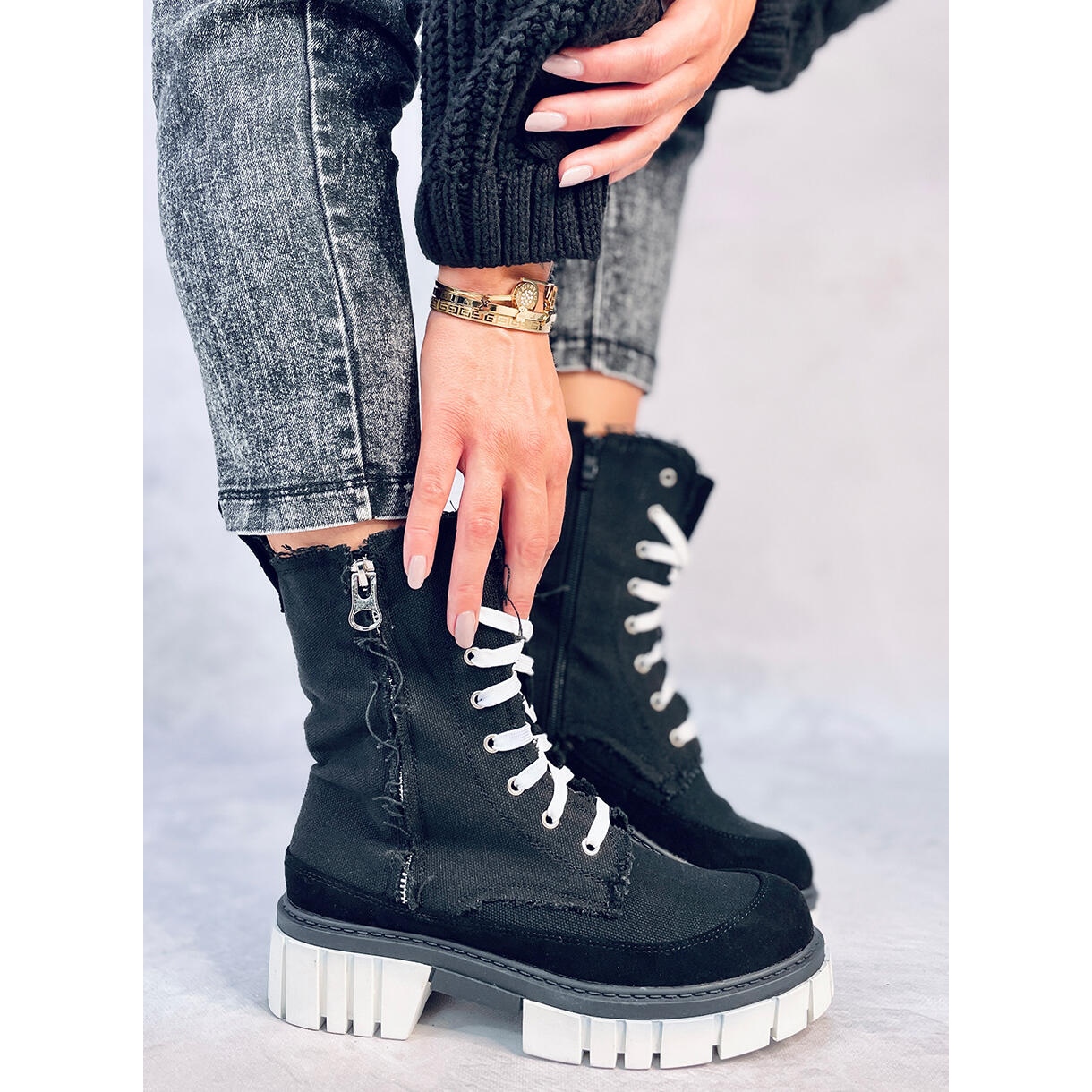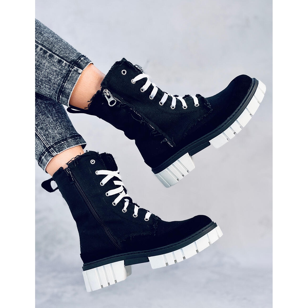 Les bottines en toile noire Vaugh avec protection sont des chaussures uniques, élégantes et pratiques pour femmes. Ils ne conviennent pas seulement aux jours les plus froids, mais surtout cette saison, ils sont considérés comme la plus grande tendance. Les bottes se caractérisent par un talon large et stable d'une hauteur de 4,5 cm. La fermeture éclair latérale facilite l'enfilage des chaussures. Leur intérieur est doublé d'une fourrure délicate, ajoutant un confort de port supplémentaire.