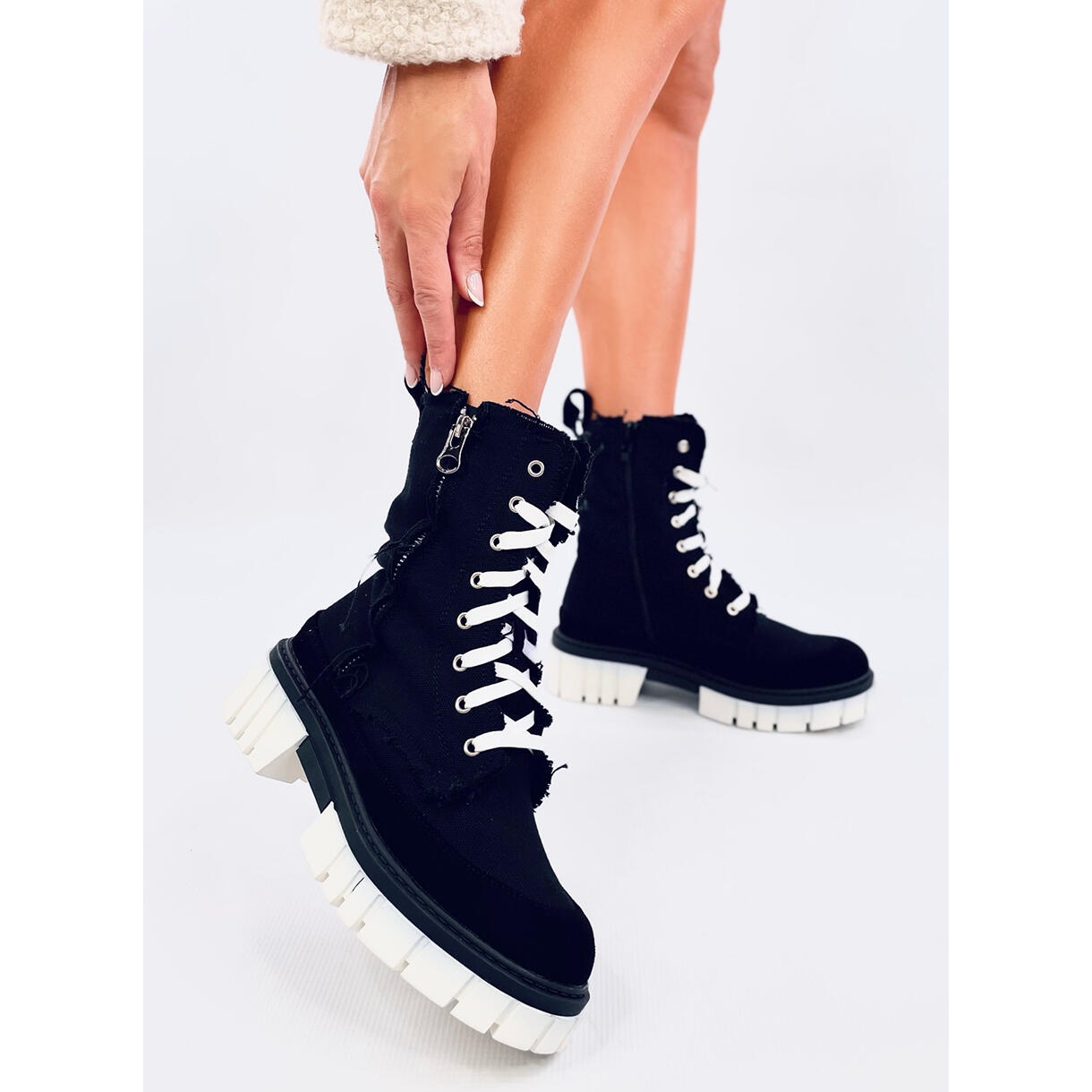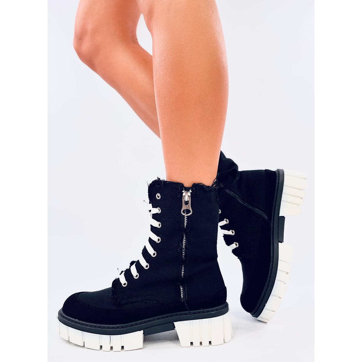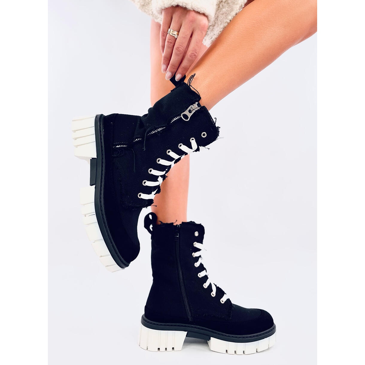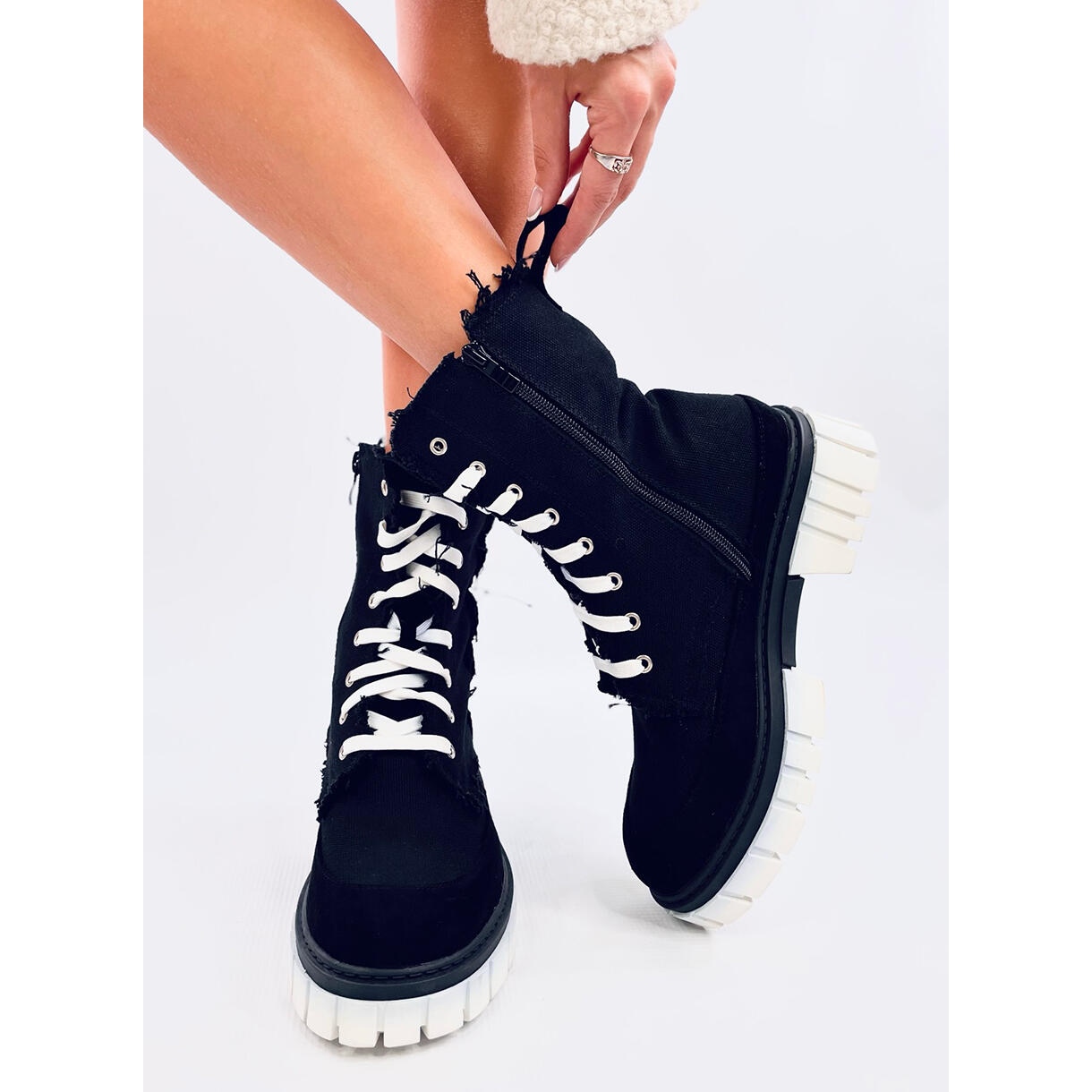 Découvrez le dernier succès de la saison - Boots Canvas sur le Vaughie Black Protector dans une couleur noire élégante. Ces chaussures uniques seront non seulement parfaites pour les jours plus frais, mais ajouteront également le caractère de toute stylisation. Un talon large avec une hauteur de 4,5 cm offre un confort chaque jour, et le château sur le côté de la tige fait de la mise en place et du décollage des bottes rapides et confortables.