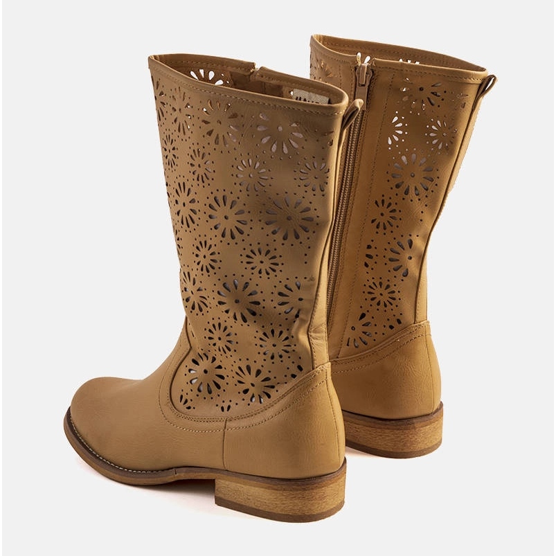 Les bottes enfant ajourées marron clair sont des bottes zippées en éco-cuir beige de haute qualité. Ces bottes, de la catégorie « Pour Enfants », se caractérisent par une structure ajourée qui les rend légères et aérées. Les bottes ont un bout rond qui assure confort et liberté de mouvement, et la tige haute offre un soutien et une protection supplémentaires. Les bottines font partie de la collection Automne.