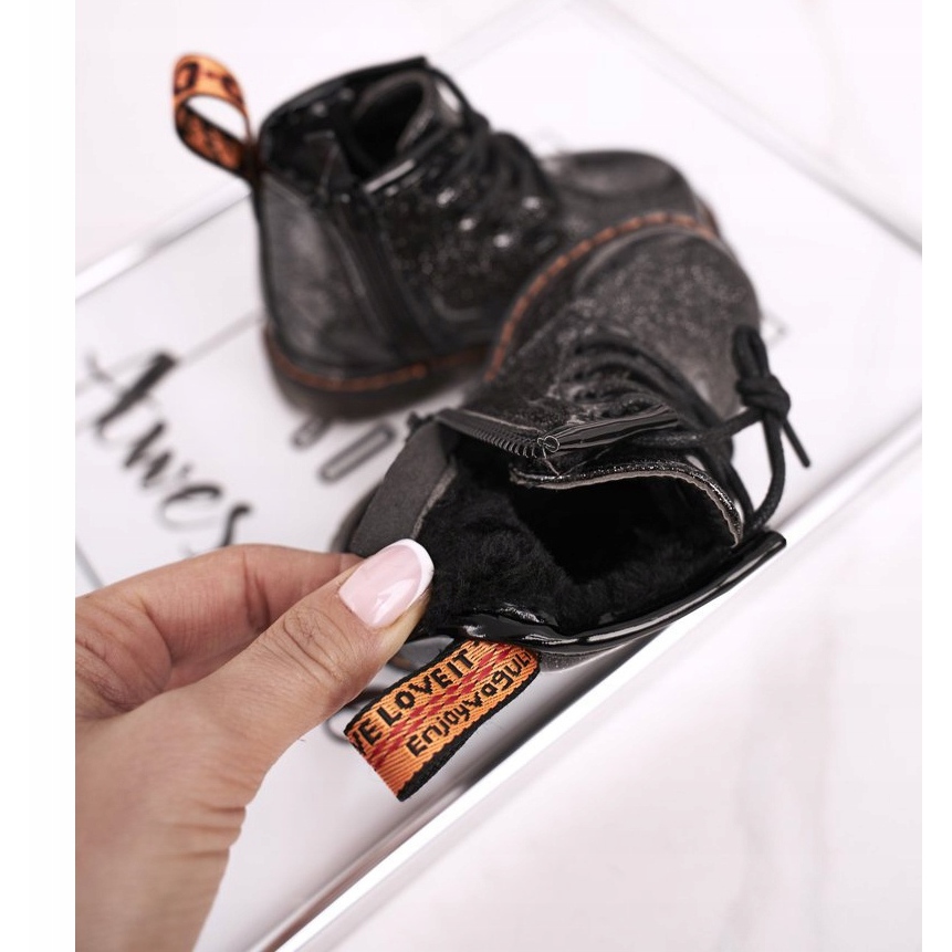 Les bottes sont isolées avec une fourrure agréable qui gardera les petits pieds au chaud même les jours les plus froids. Grâce au laçage classique, elles s'adaptent parfaitement à tout type de pied, et la fermeture éclair cousue sur le côté permet d'enfiler et de retirer facilement les chaussures. Un avantage supplémentaire est le contrefort de talon rigide, qui assure la stabilité et le confort de port.