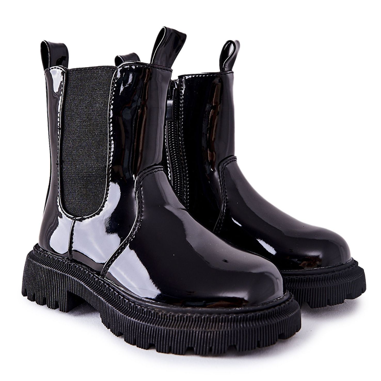 Ce sont des bottes isolées pour enfants élégantes et confortables, laquées de couleur noire à la mode, du fabricant FR1. Ces bottines sont le choix parfait pour les petites femmes qui veulent être à la mode sans sacrifier le confort. Fabriqués en cuir écologique verni de haute qualité, ils séduisent non seulement par leur esthétique, mais aussi par leur praticité.