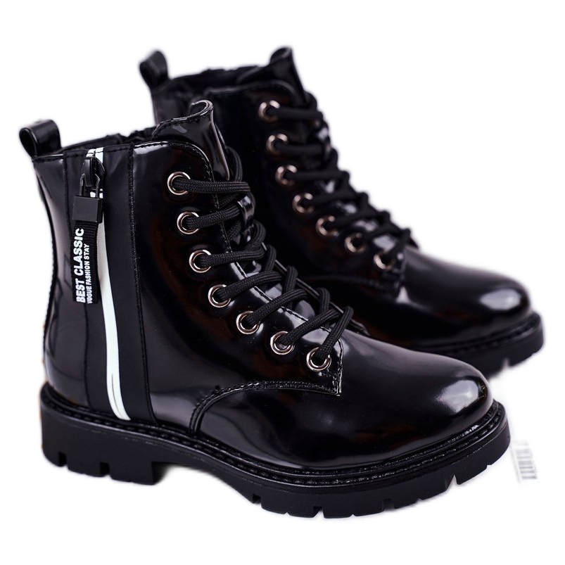 Détails: Vinceza Bottines Enfant Chaudes à Fermeture Laquée Noir Falcon