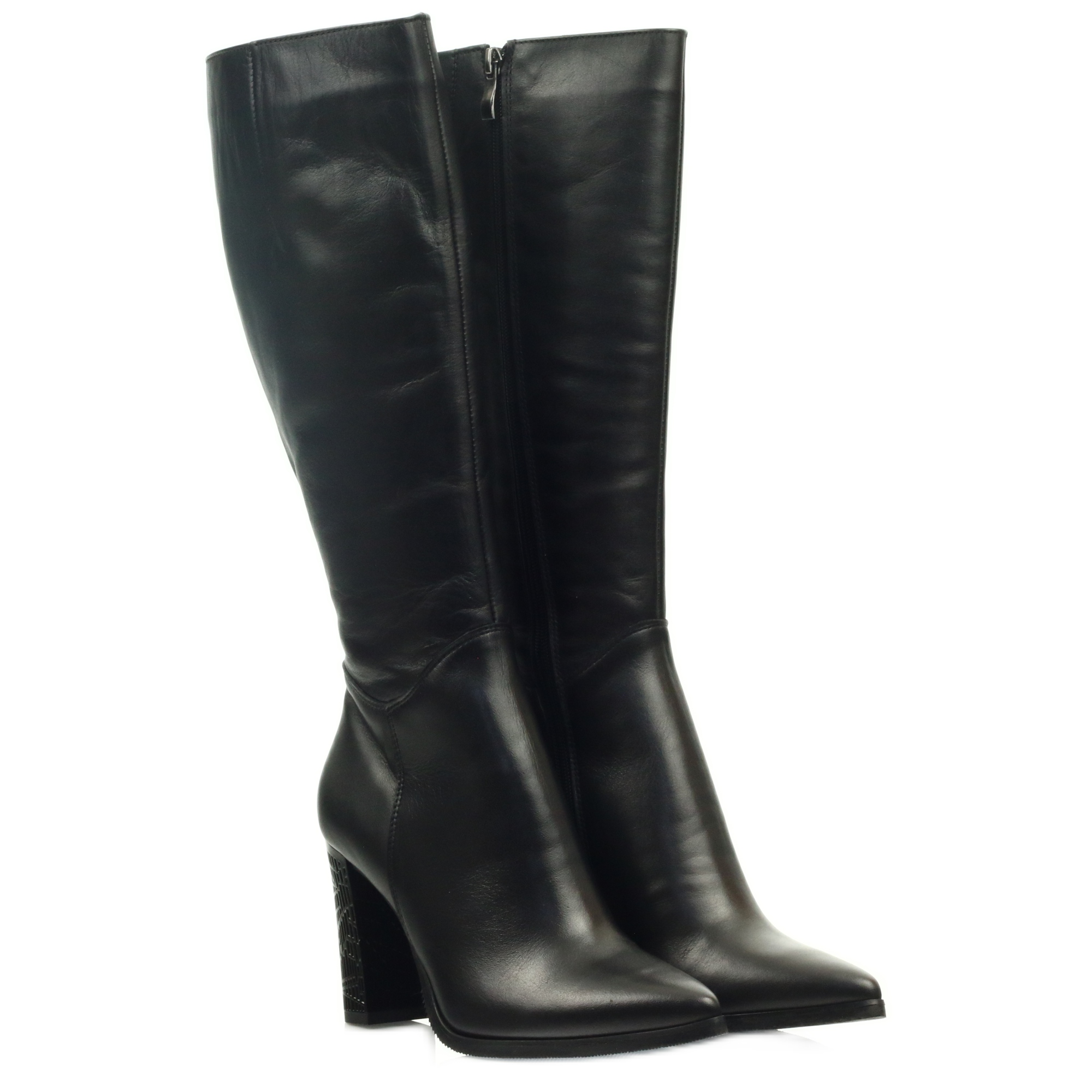 Les bottes Espinto noires ont une coupe classique, atteignant le genou, ce qui en fait un ajout universel à différents styles, du plus décontracté au plus élégant. Le talon décoré de 8,5 cm de haut est non seulement esthétique, mais surtout stable et confortable à utiliser, ce qui permet de le porter longtemps sans se sentir fatigué.