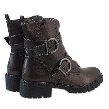 Les bottes sont équipées de laçage pratique et de boucles accrocheuses qui leur donnent du caractère. Il y a une fermeture éclair sur le côté de la tige, ce qui facilite l'enfilage. Une semelle solide et synthétique assure le confort de marche, et un bloc de dix centimètres ajoute de la confiance en soi.