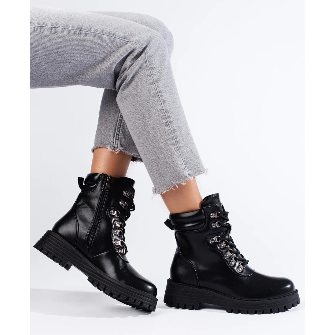 Élégant, confortable et fonctionnel - Les bottes en dentelle noire d'une marque différente sont le choix parfait chaque jour. Fabriqué en cuir écologique de haute qualité, à l'intérieur isolé et à un insert doux à partir d'une lame de chaussures assurez le confort même les jours plus froids. Un talon stable et plat d'une hauteur de 4,5 cm et 2,5 cm la plate-forme ajoute une hauteur subtile, sans abandonner le confort.