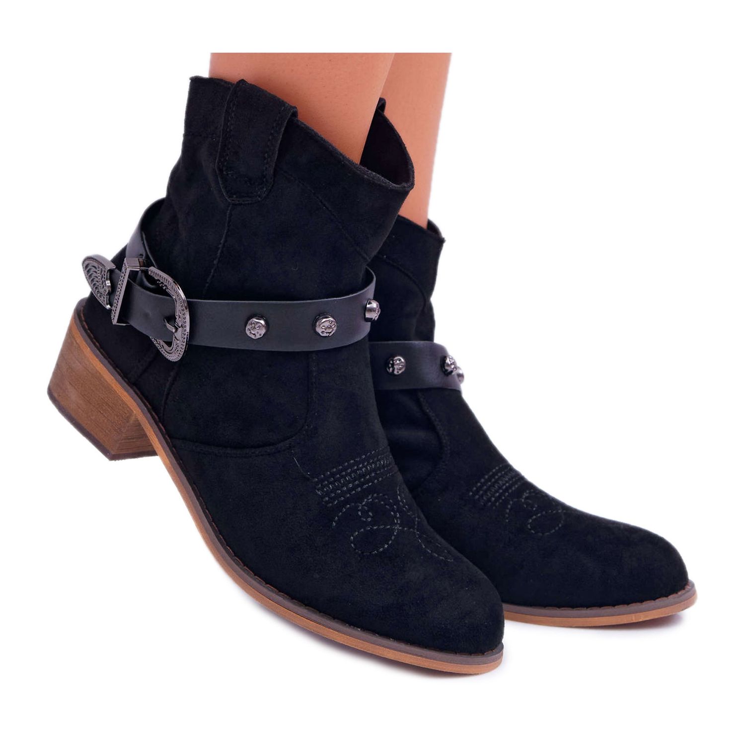 FB2 FB2 Bottines Femme à Talon Plat Cowboy Boots à Boucle Noir Ewella