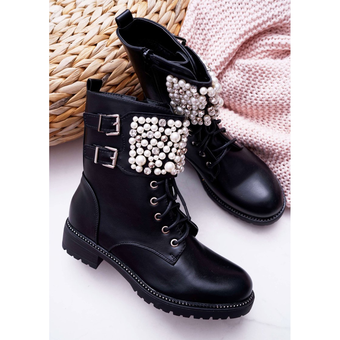 Découvrez un nouveau visage d'élégance et de confort avec les bottines femme SEA Bemmer. Ces bottes militaires noires sont le choix parfait pour les journées plus froides, alliant design tendance et praticité. Leur tige haute protège parfaitement la cheville, et la fermeture latérale ornée de belles perles et zircons leur confère un caractère unique.