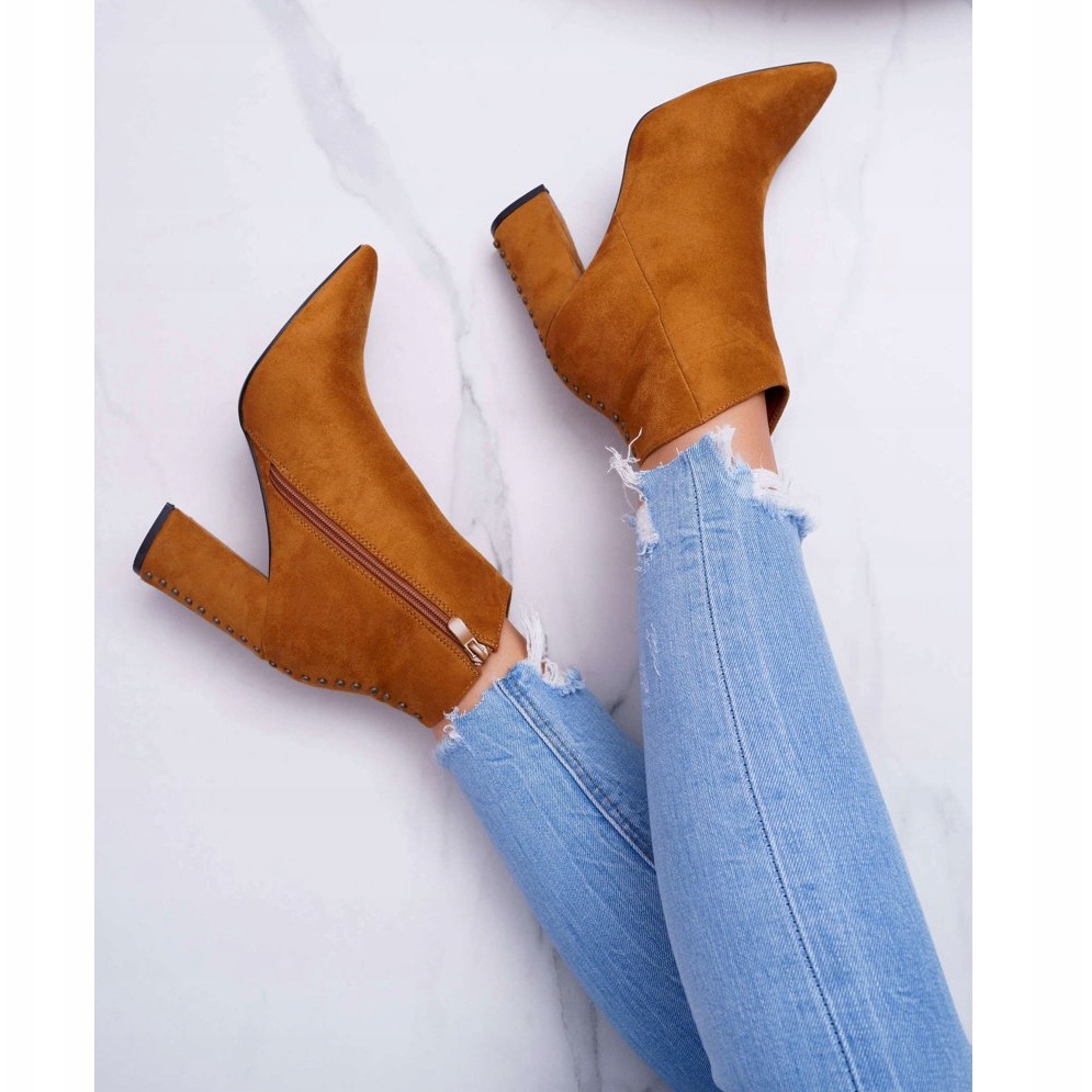 Détails: PS1 Bottines Femme À Talons Hauts Avec Rivets En Spitz RB23P Camel Snack brun