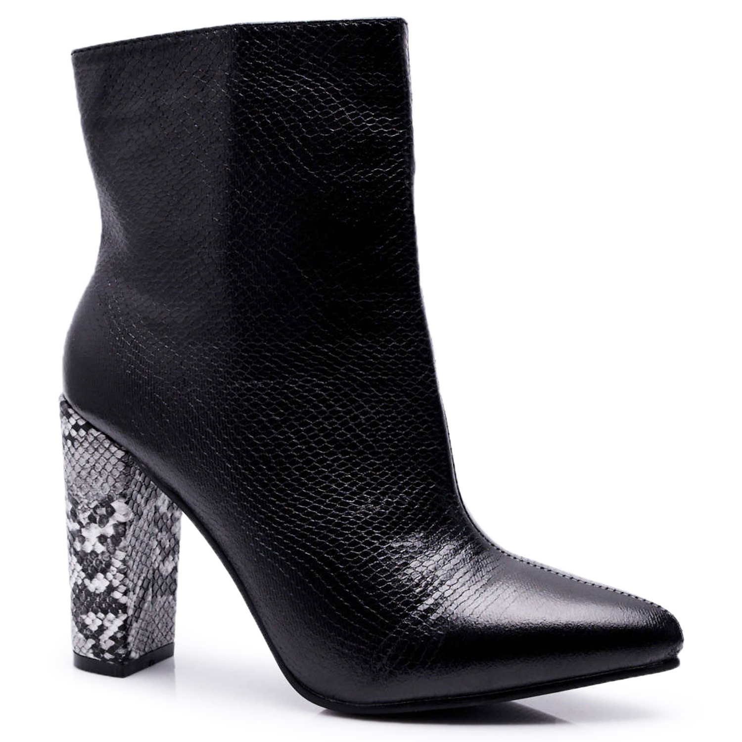 FJ1 Bottines Femme À Talons Hauts Serpent Motif Noir Vernel