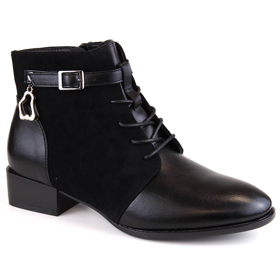 Boots pour femmes Potocki SZ12260 - Classic dans l'hiver. Des bottines élégantes et noires combinant le confort et la fonctionnalité: l'isolation assurera le confort pendant les jours plus frais, et un talon plat avec une hauteur de 3 cm offre une stabilité avec un usage quotidien.