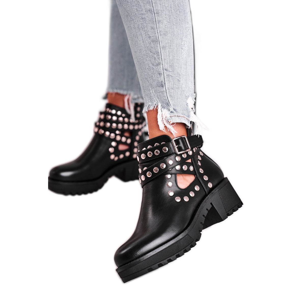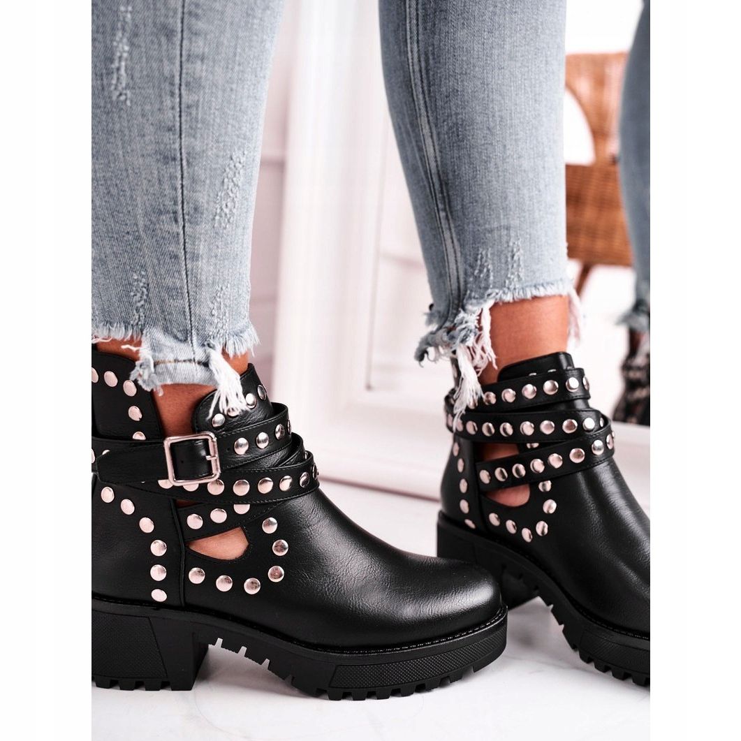 Détails: Bottines Femme Avec Rivets Grunge Noir Heavenly