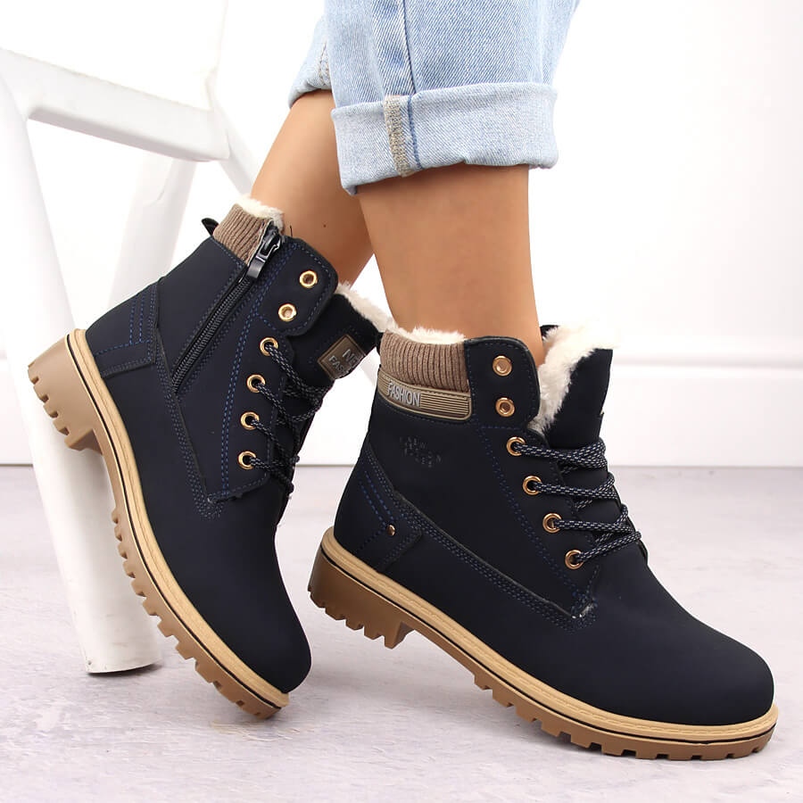 Fabriqués en cuir biologique de haute qualité, les trappeurs se caractérisent par l'isolation d'une fourrure agréable à tactile, ce qui signifie que même les jours froids, vos pieds resteront à une température confortable. Le nez rond fournit le bon espace pour les doigts, et la haute supérieure atteignant environ 12 cm ajoute du caractère aux chaussures.