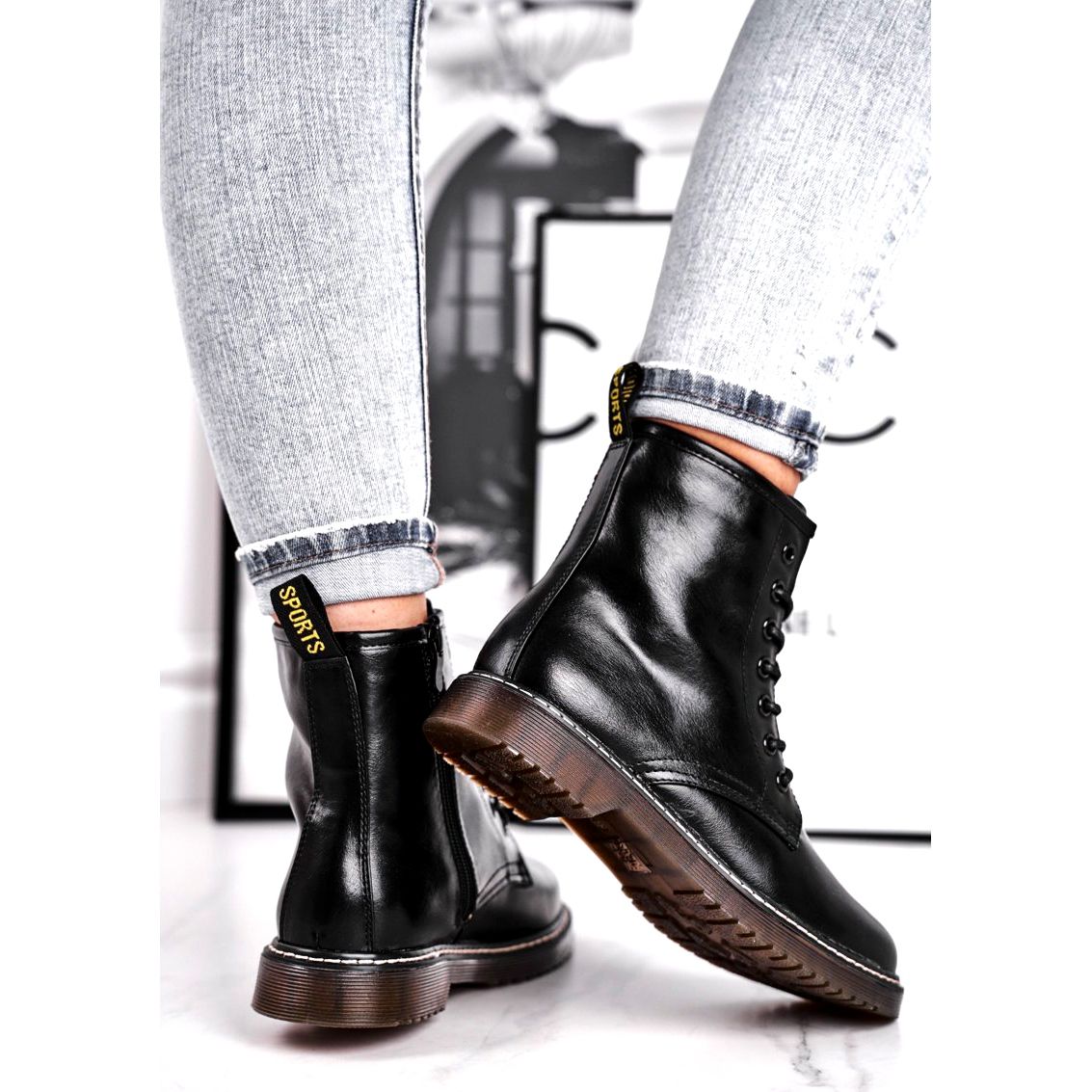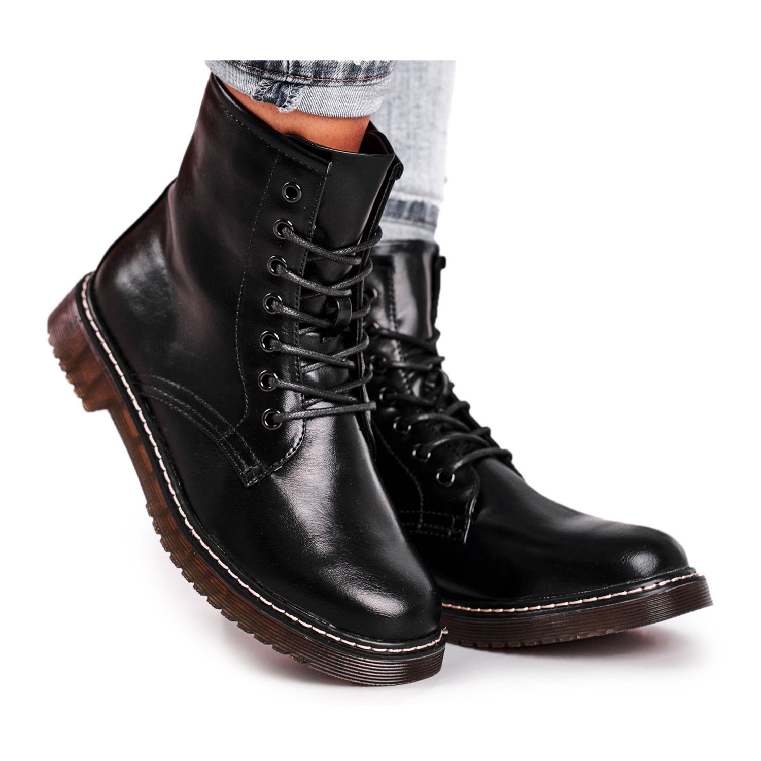 EVE Bottines Femme Bottines Trappeurs Laquées Marita Noir