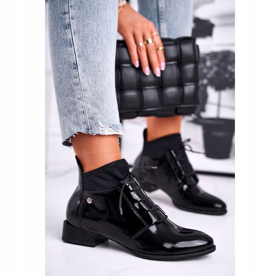 Ces bottines noires signées Maciejka s'associeront parfaitement avec des tenues décontractées ou plus élégantes. Un avantage supplémentaire réside dans les strass et les détails laqués qui leur confèrent un caractère tendance. N'attendez pas, investissez dans votre style et faites-vous remarquer avec ces chaussures uniques !