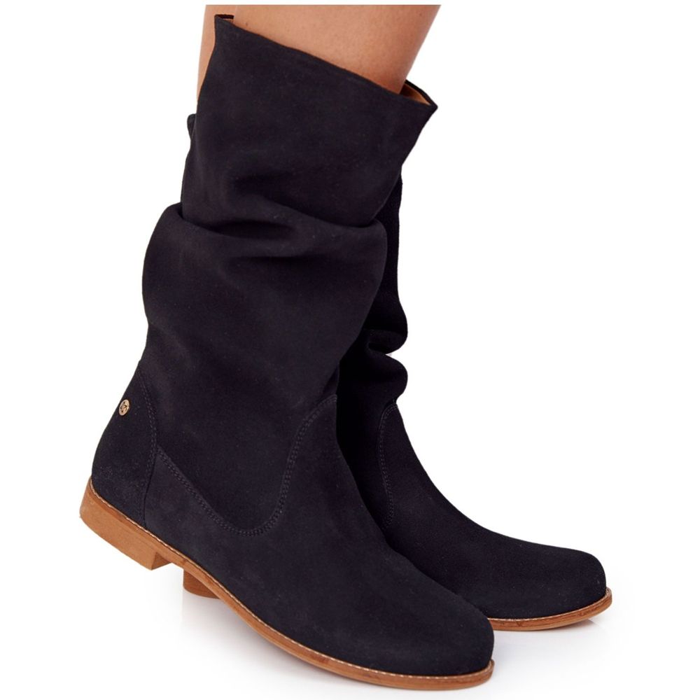 Des bottes élégantes et confortables Maciejka entièrement en daim naturel - parfaite pour la saison automne / hiver. La semelle intérieure en cuir souple offre un réconfort tout au long de la journée, et le talon bas et stable (2 cm) rend les chaussures adaptées quotidiennement et pour des styles plus élégants. La couleur noire classique et la coupe simple avec un nez rond en font un complément universel à la garde-robe.
