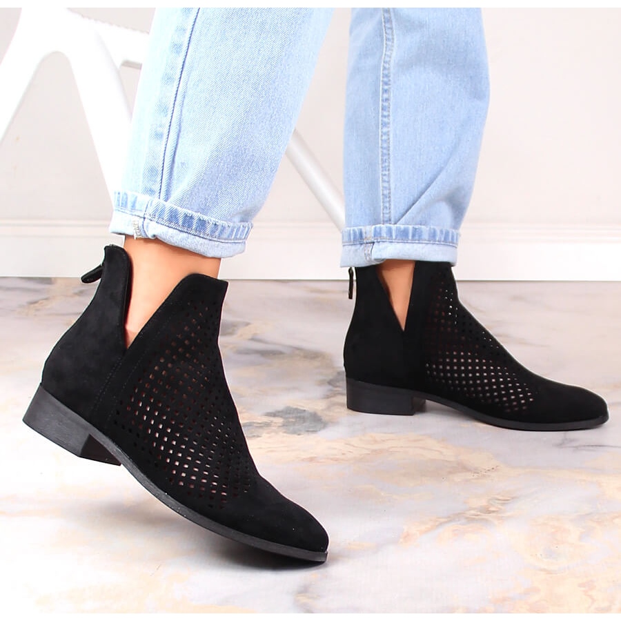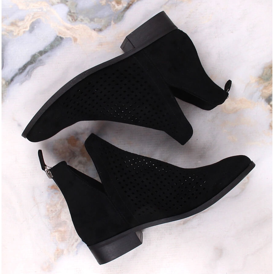 Détails: Bottines femme daim noir ajouré Potocki SZ12107 le noir