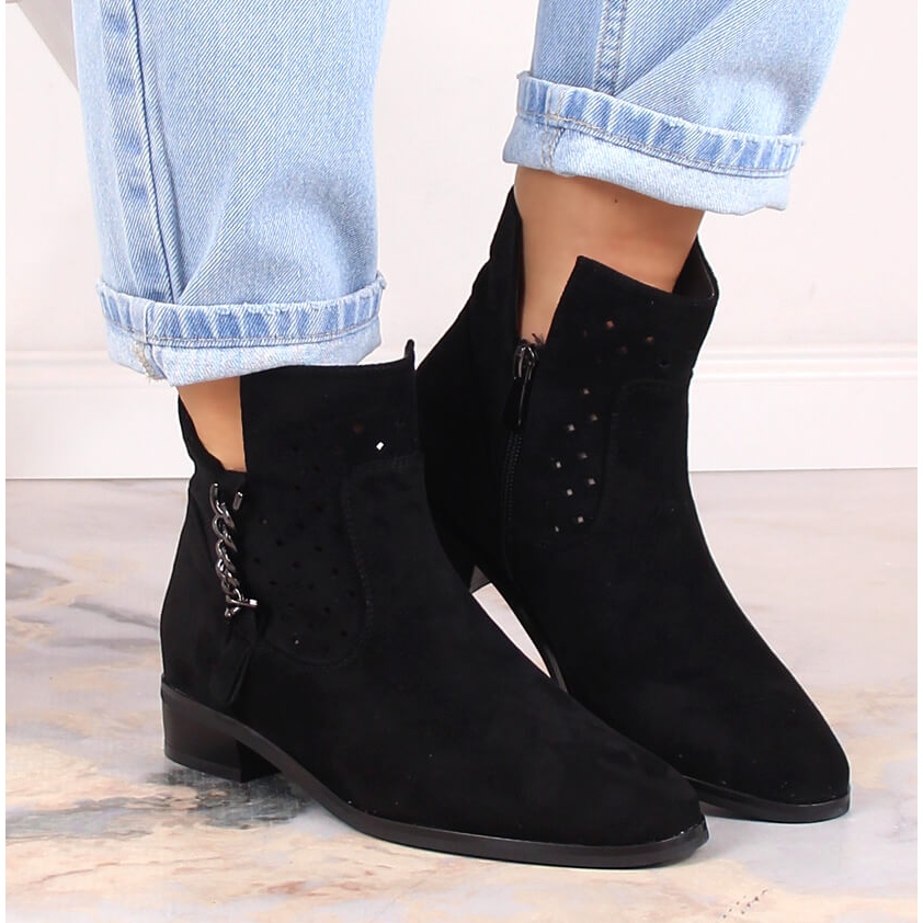 Détails: Bottines femme daim noir ajouré Vinceza 10885 le noir