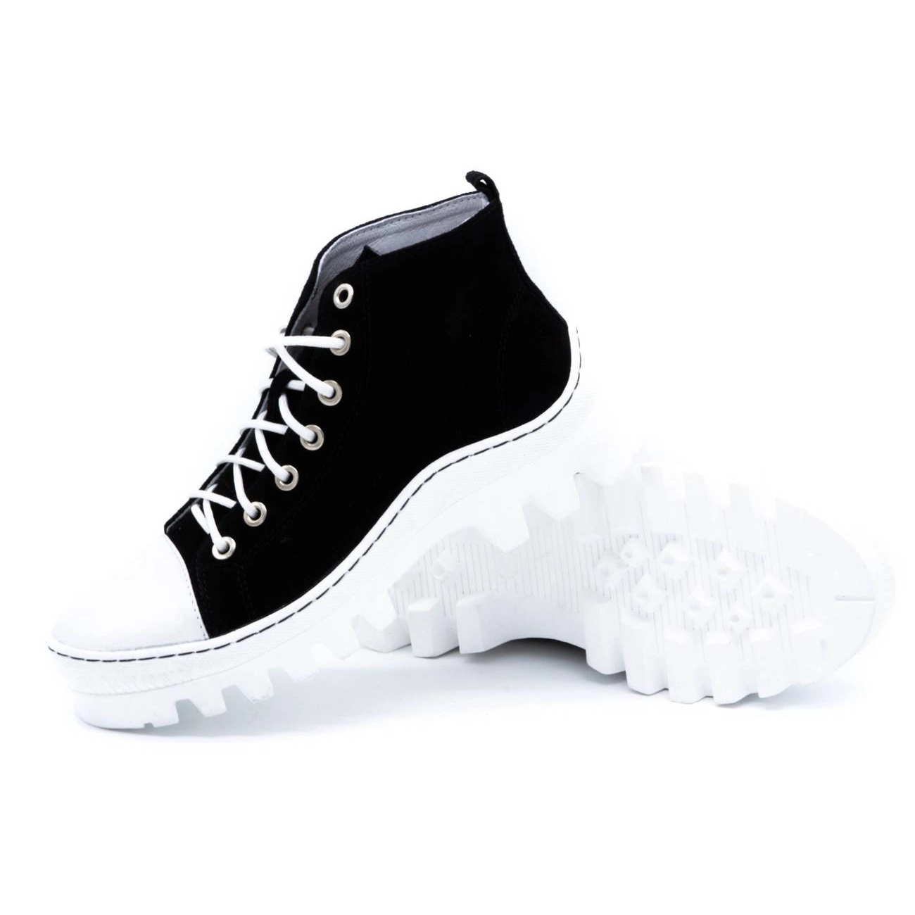 Les baskets Polbut D1 ont une semelle synthétique qui offre un bon amorti et une bonne stabilité pendant la marche. Avec une hauteur de talon de 3,5 cm, elles sont parfaites pour les femmes qui préfèrent des chaussures légèrement plus hautes sans sacrifier le confort. Les bottes sont fermées par des lacets classiques, ce qui permet un ajustement parfait au pied.
