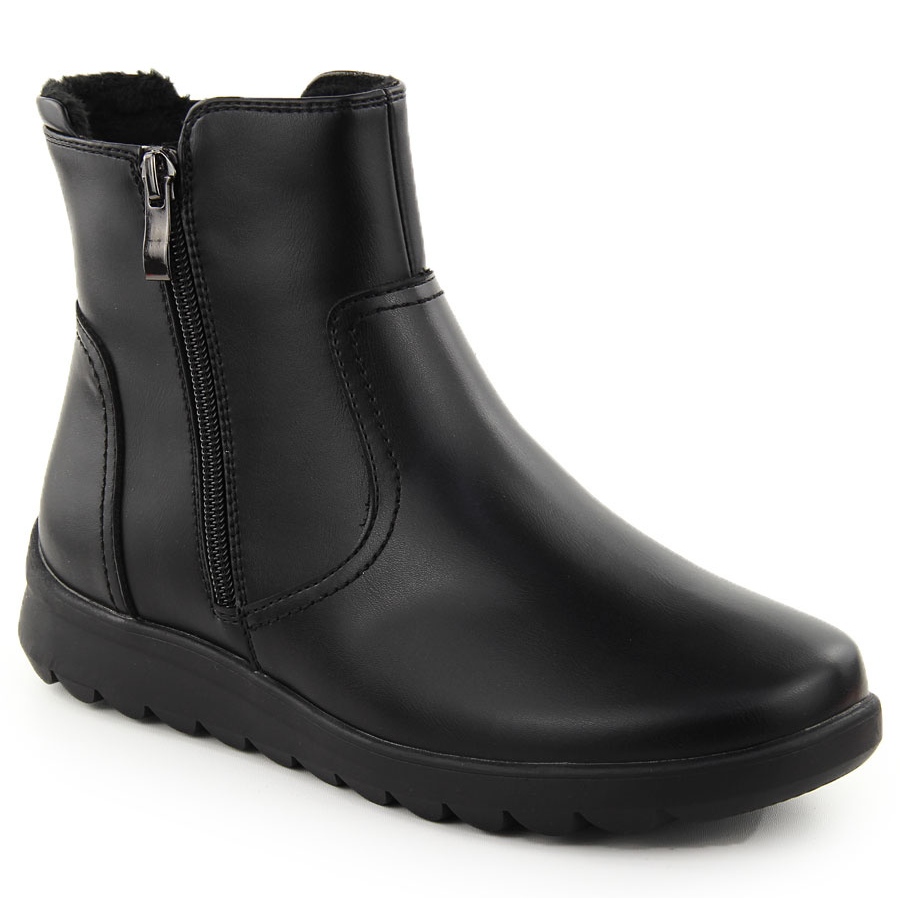 Les bottes ont un nez rond et une hauteur de la cheville (environ 13 cm), ce qui leur donne un personnage élégant. La semelle de 2 cm d'épaisseur lui-même assure la stabilité et la plate-forme rend chaque étape confortable. Ce modèle s'intègre parfaitement dans la catégorie de décontracté et d'isolation, il fonctionnera donc certainement dans les stylisations de tous les jours et pendant les promenades hivernales.