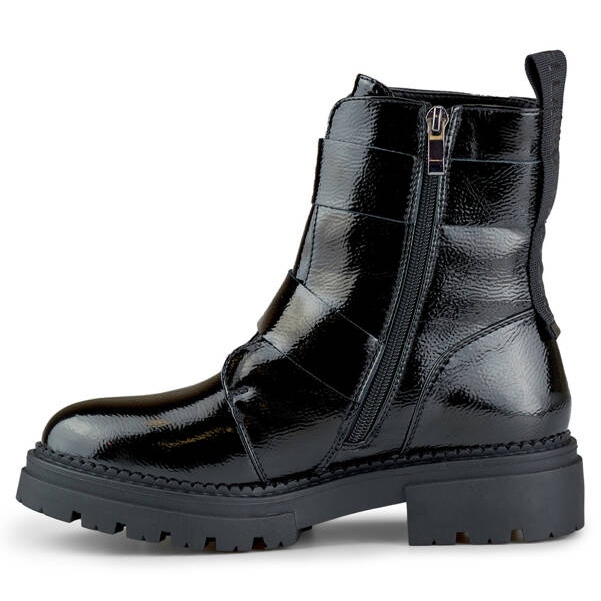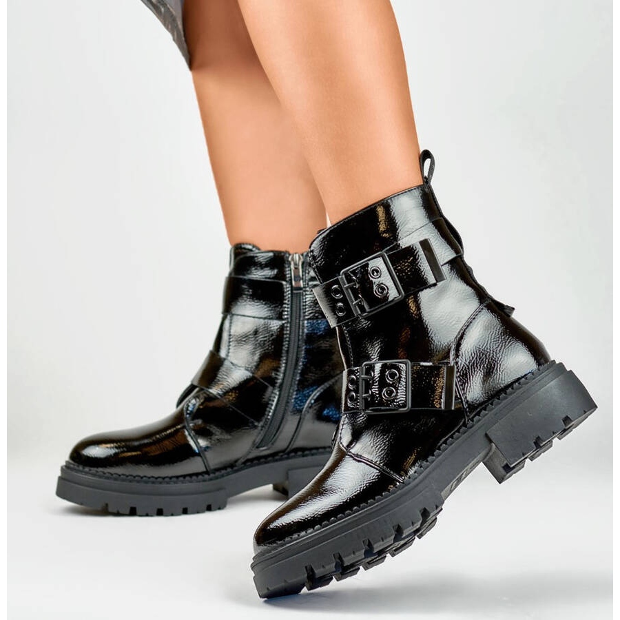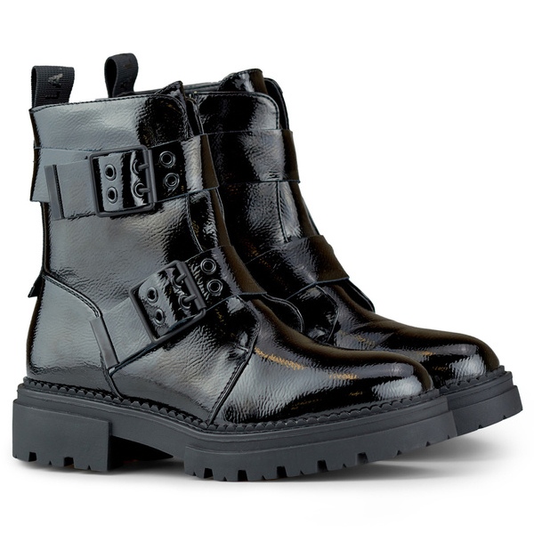 Détails: Bottines femme en cuir verni à boucles, noir 250007B-LA le noir
