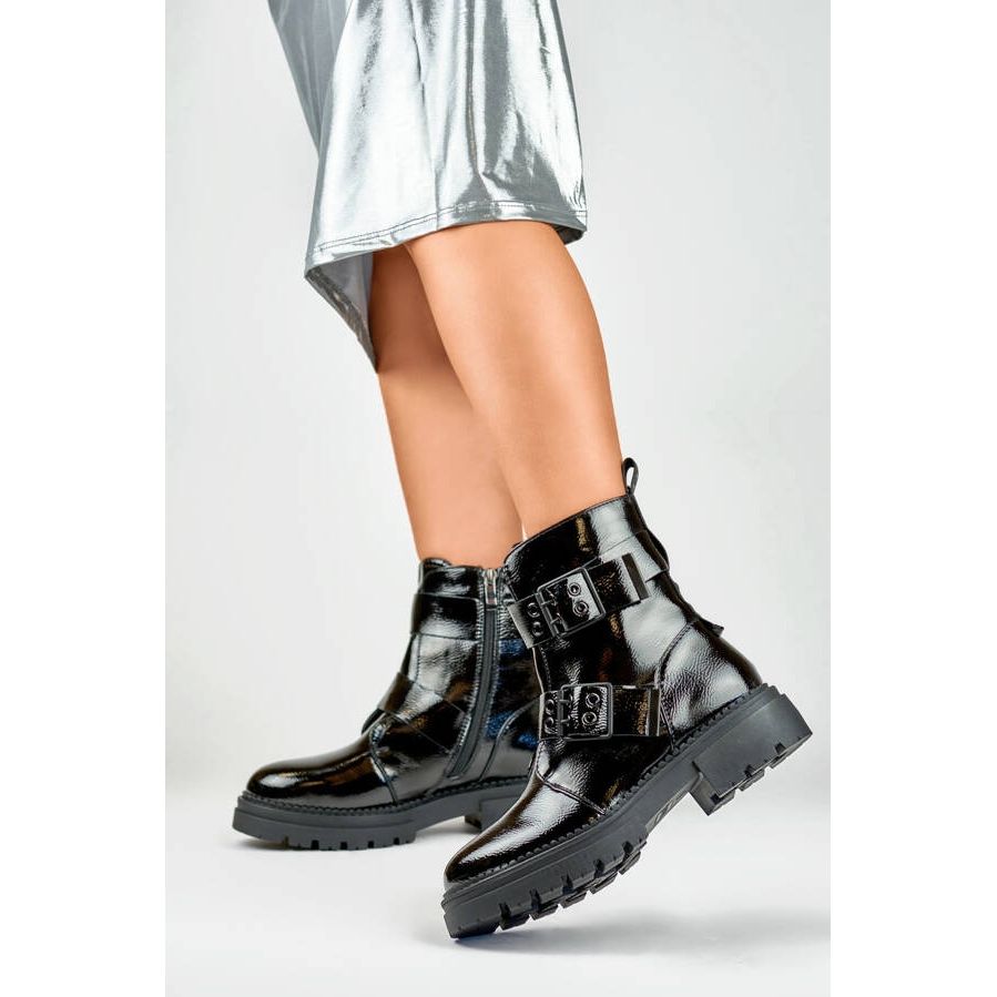 Détails: Bottines femme en cuir verni à boucles, noir 250007B-LA