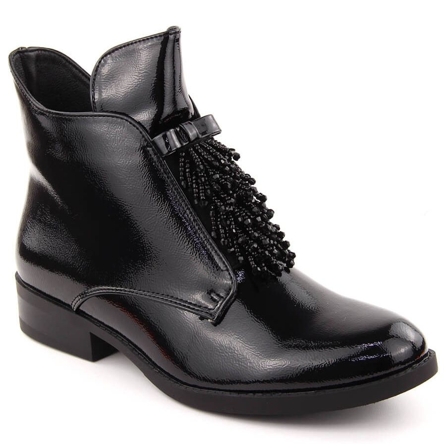 Détails: Bottines femme en cuir verni avec perles, noir S.Barski le noir