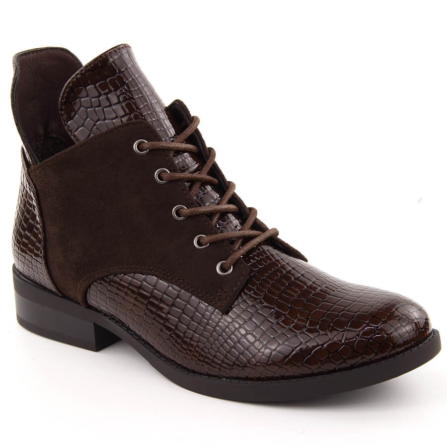 Détails: Bottines femme en cuir verni, marron, Vinceza 16477 brun
